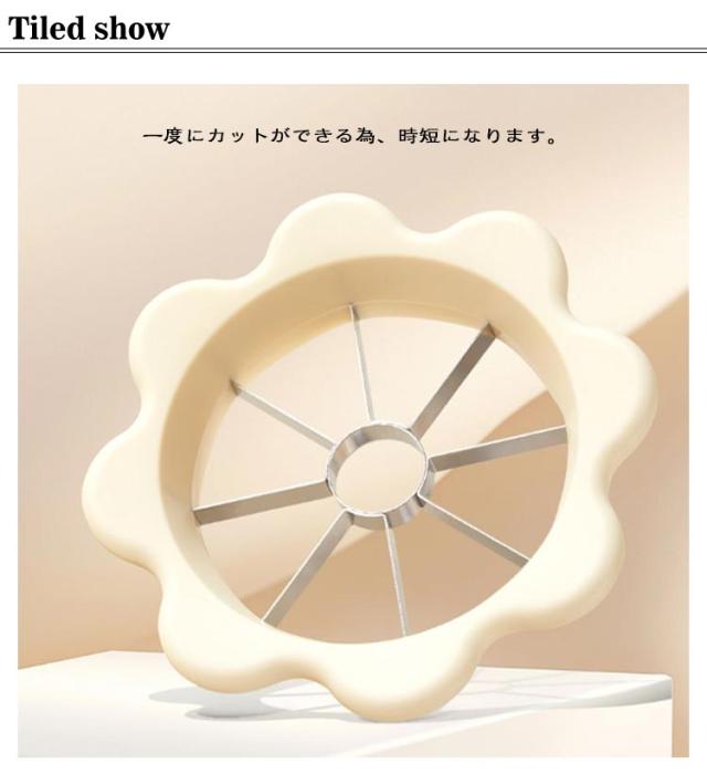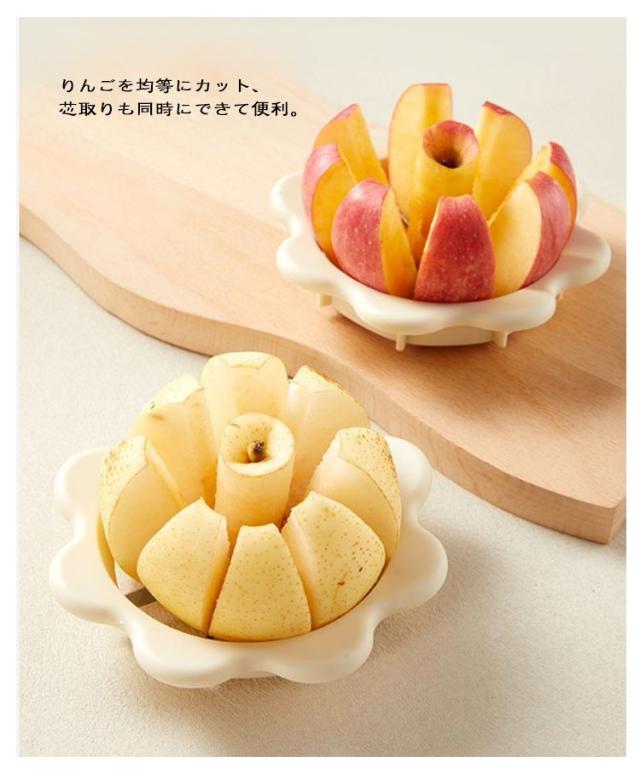 | リンゴ、ナシを一気に8等分にできるアップルカッター。 一度にカットができる為、時短になります。 りんごを均等にカット、芯取りも同時にできて便利。 お子様でも簡単に使える為、一緒に料理を楽しむことが出来ます! | |