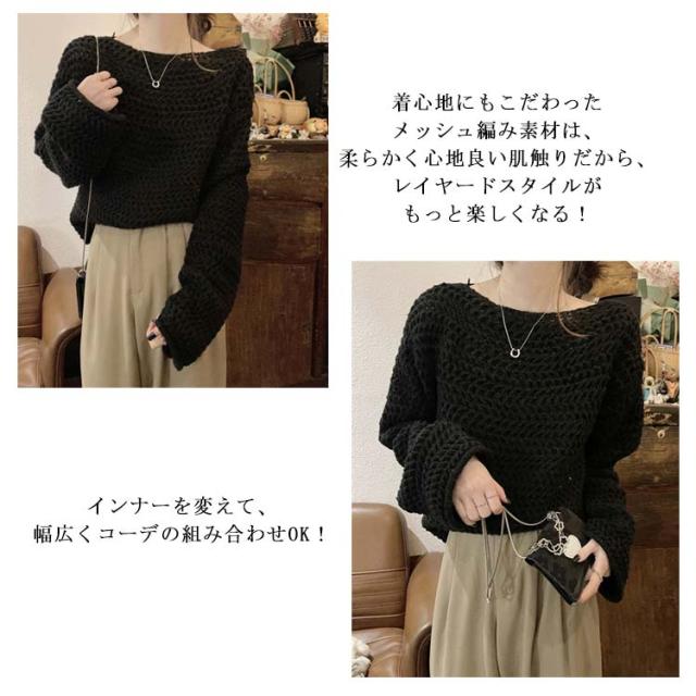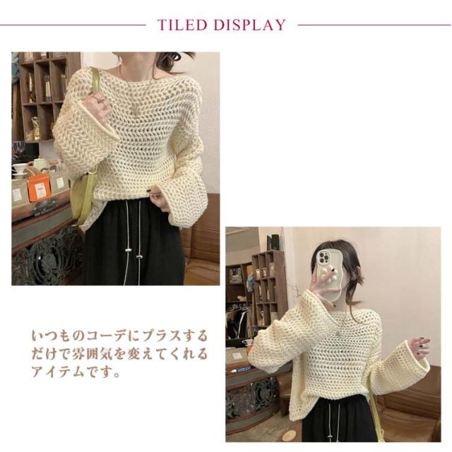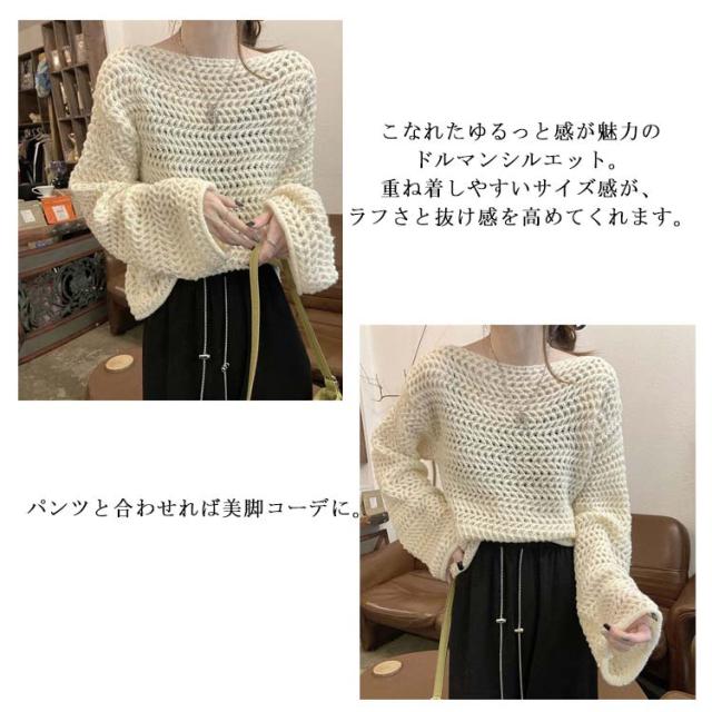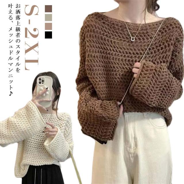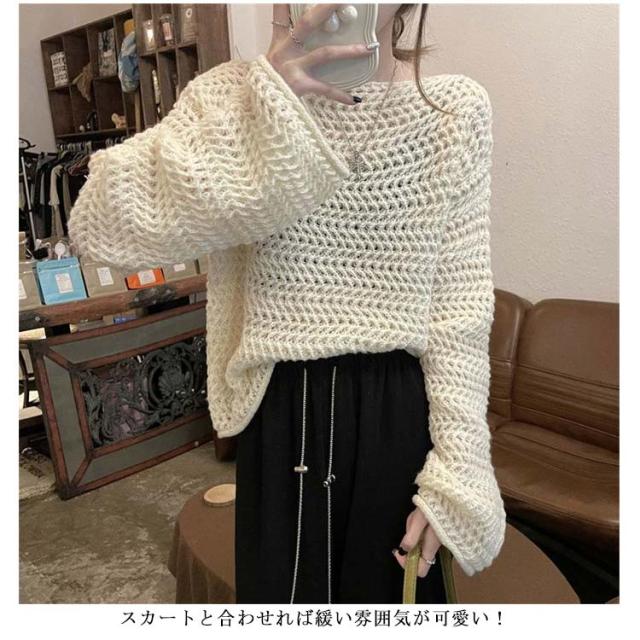 透かし編み ニット レディース 春 夏 秋 冬 長袖 チクチクしない レイヤード オールシーズン 着回し メッシュ こなれ感 透け感 重ね着 セーター 韓国ファッション カットソー 上品 可愛い カジュアル 体型カバー S M L XL 2XL 送料無料