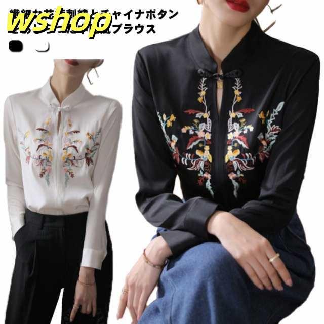 ブラウス レディース 長袖 チャイナ風 ブラウス シャツ プルオーバー 春夏 花柄 刺繍 チャイナシャツ チャイナボタン チャイナ服 トップス 中国風 薄手 スタンドカラー シャツブラウス ナチュラル エレガント カジュアル 上品 きれいめ フェミニン 春服 夏服 送料無料