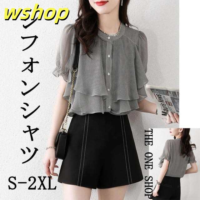 秋の新作特集 品質安心 体型カバー トップス 半袖 ブラウス 夏 今だけ 人気急上昇 縦縞 【wshop レディース ゆったり 】シフォンシャツ ランキング常連 ビッグシルエット しま柄 お買い得プライス
