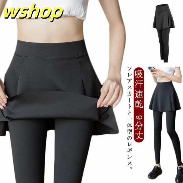【wshop 】スカート付き レギンス ヨガパンツ 9分丈 冬 レディース ヨガレギンス 吸汗速乾 ピラティス 春 秋 一体型 ヨガウェア フレア ハイウエスト ストレッチ スポーツ ランニング スカート付き フィットネスウェア ジムウェア 伸縮性 体型カバー