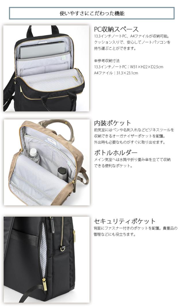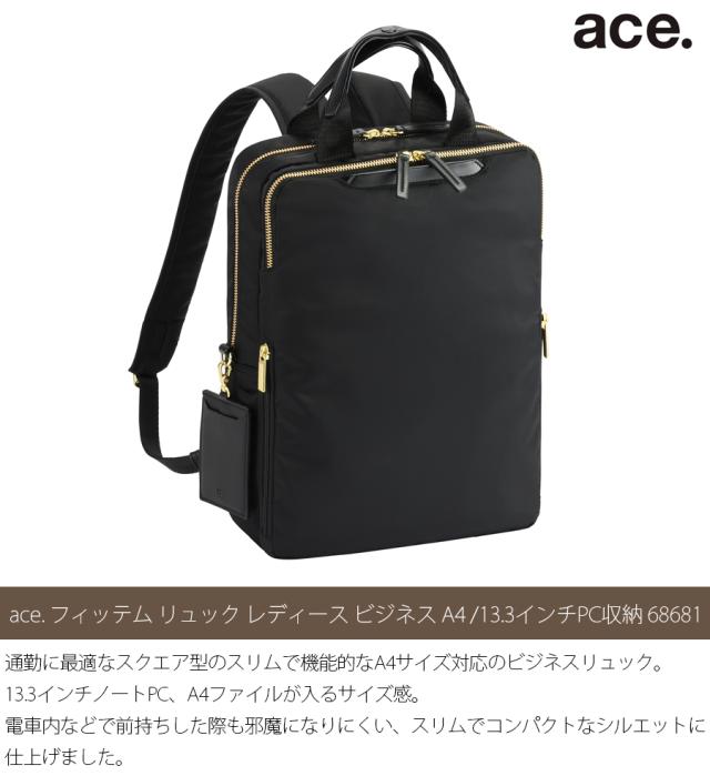 ace. エース フィッテム ビジネスリュック レディース A4対応 13.3インチPC収納 68681 エースジーンレーベル