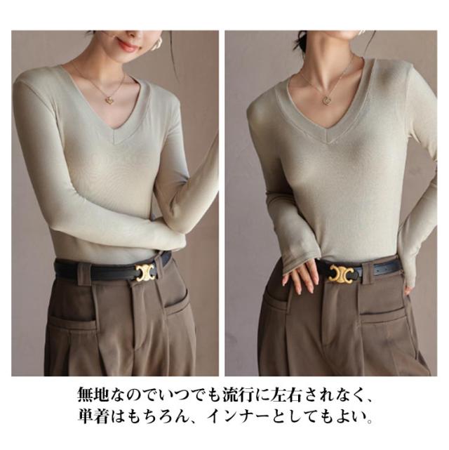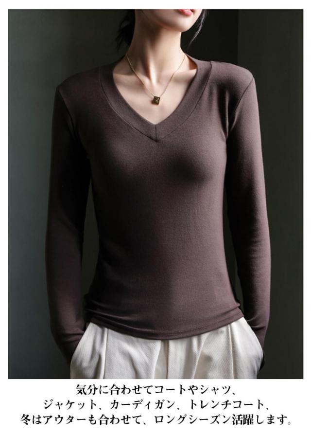 | シンプルで着まわしの効くVネックカットソーが今年も登場です! 無地なのでいつでも流行に左右されなく、単着はもちろん、インナーとしてもよい。 気分に合わせてコートやシャツ、ジャケット、カーディガン、トレンチコート、冬はアウターも合わせて、ロングシーズン活躍します。 通勤、室内、アウトドア、デート、旅行など様々な場面に適している長袖カットソーです。 | |
