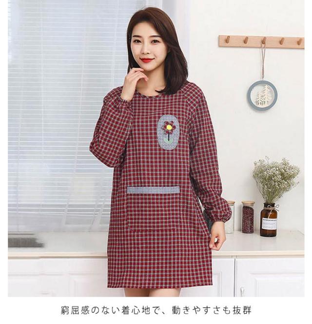 袖付き エプロン 料理教室 チェック柄 メンズ 汚れ防止 レディース 大きいサイズ 後ろ紐留め ポケット付き 保育士 割烹着 キッチン用 ポケット付き 長袖 ガーデニング 防油 作業用 ワーク服 男女兼用