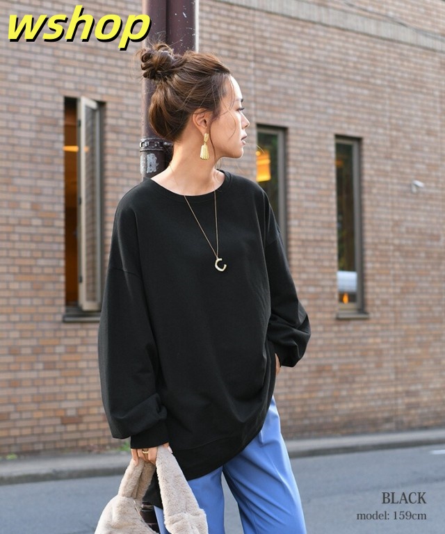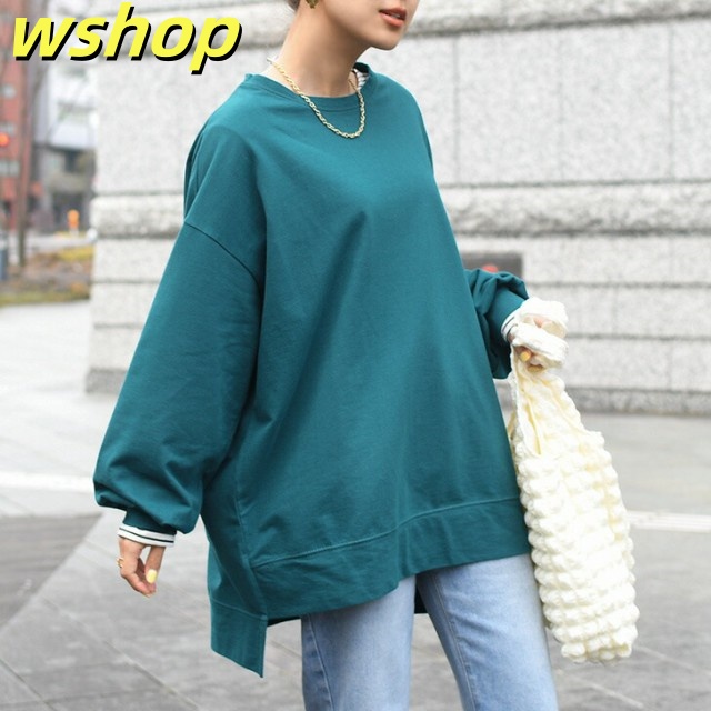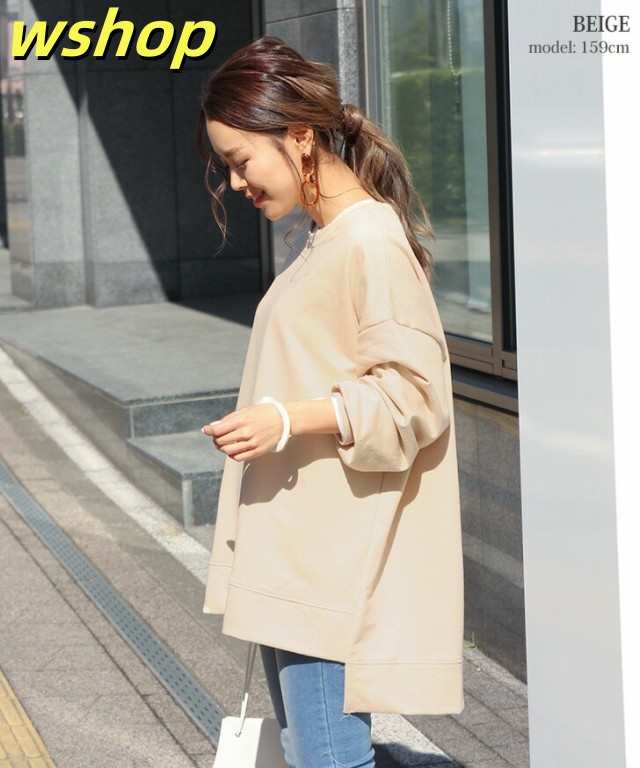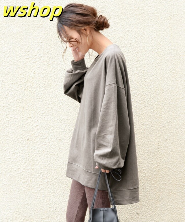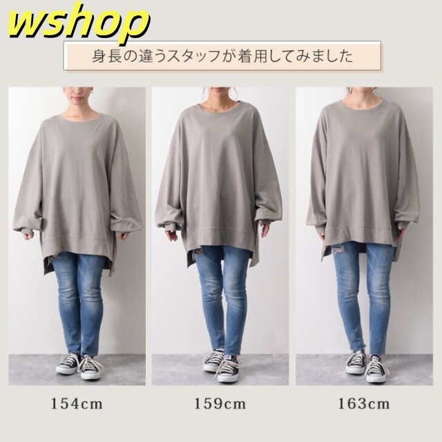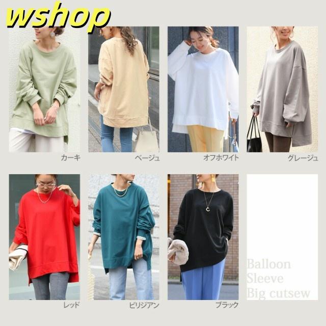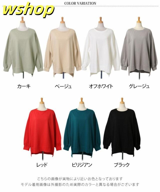 軽量仕様 SNS話題 スウェット レディース テールカット マタニティ 【wshop トップスチュニック トップス トレーナー ゆったり 】バルーン袖 無地 大きいサイズ 楽ちん ボリューム袖 長袖 カットソー ライト ロンT 春 薄手 ルームウェア ロンティー 今だけ限定