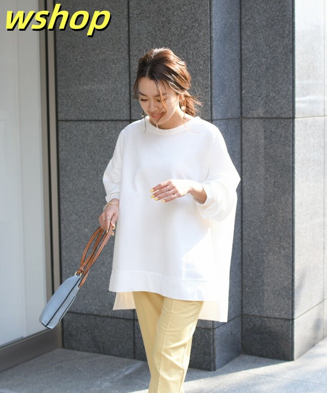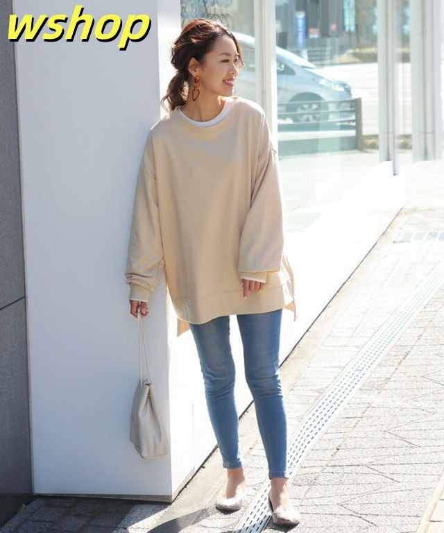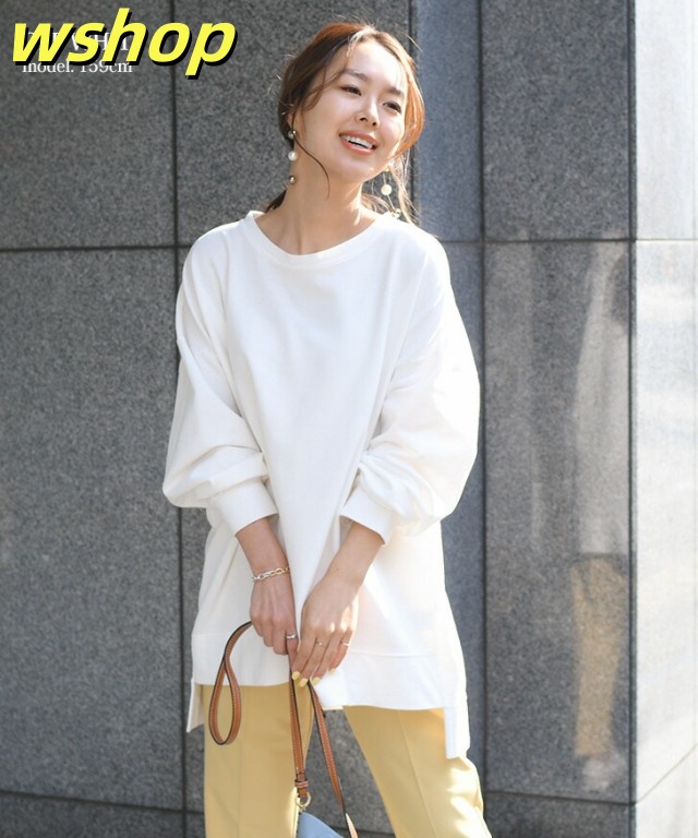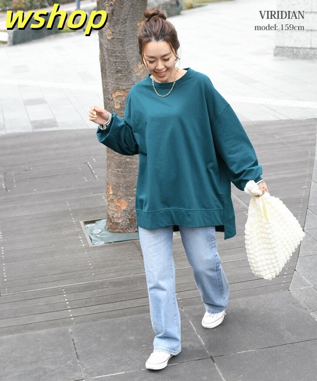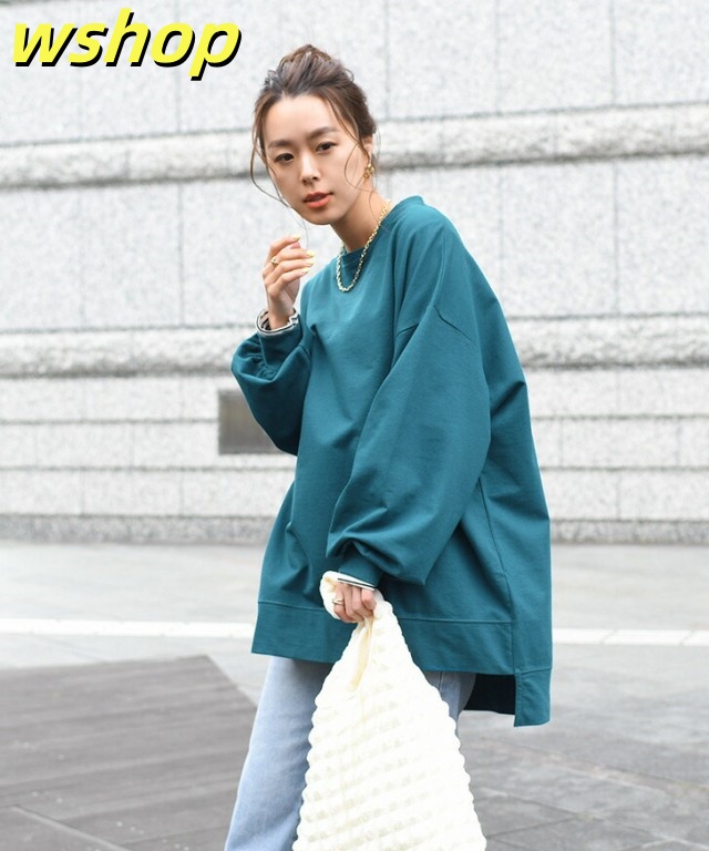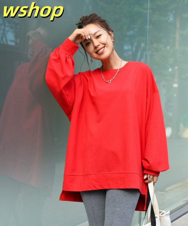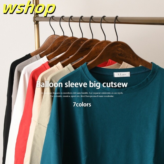 軽量仕様 SNS話題 スウェット レディース テールカット マタニティ 【wshop トップスチュニック トップス トレーナー ゆったり 】バルーン袖 無地 大きいサイズ 楽ちん ボリューム袖 長袖 カットソー ライト ロンT 春 薄手 ルームウェア ロンティー 今だけ限定