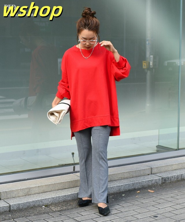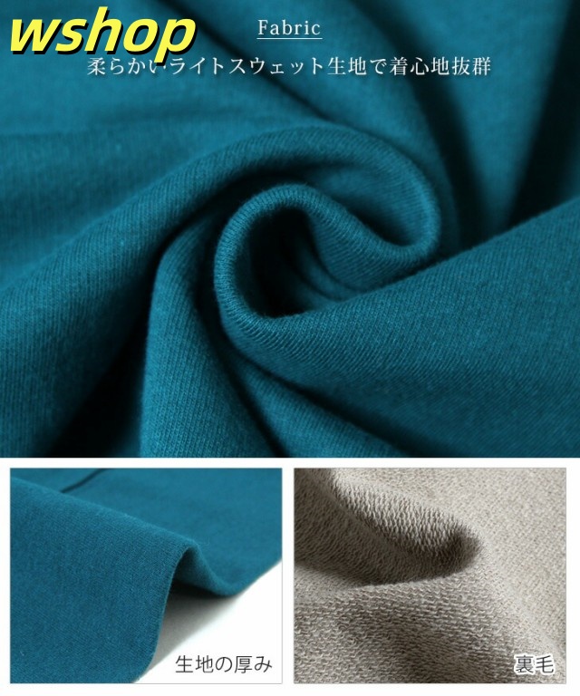 | 生地感 | 柔らかいやや薄手のスウェット地 【伸縮性】ややあり【透け感】なし【裏地】なし | ||||