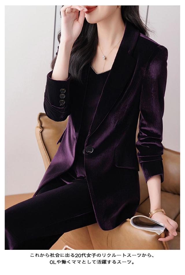 セットアップ ベロアスーツ 就職活動 ジャケット 上下セット ロングパンツ レディース パンツ 長袖 1つボタン フォーマルスーツ OLスーツ リクルートスーツ 就活スーツ ビジネス 女性用スーツ ベロアスーツ テーパード 就活 通勤 制服 事務服 オフィス 卒業式 成人式