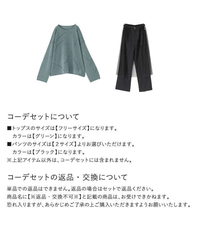 23日最大1200円クーポン 【送料無料】『ランダムラインニット×巻きチュールスカート付きパンツコーデ2点SET』【メール便不可】【40】[2点コーデセット 2025 レディース ニット トップス 長袖 セーター パンツ ボトムス ストレートパンツ]