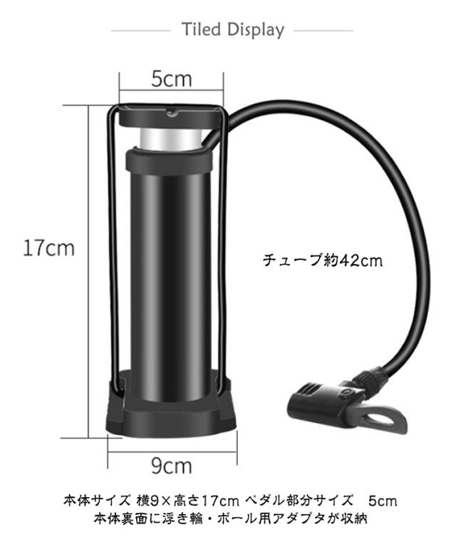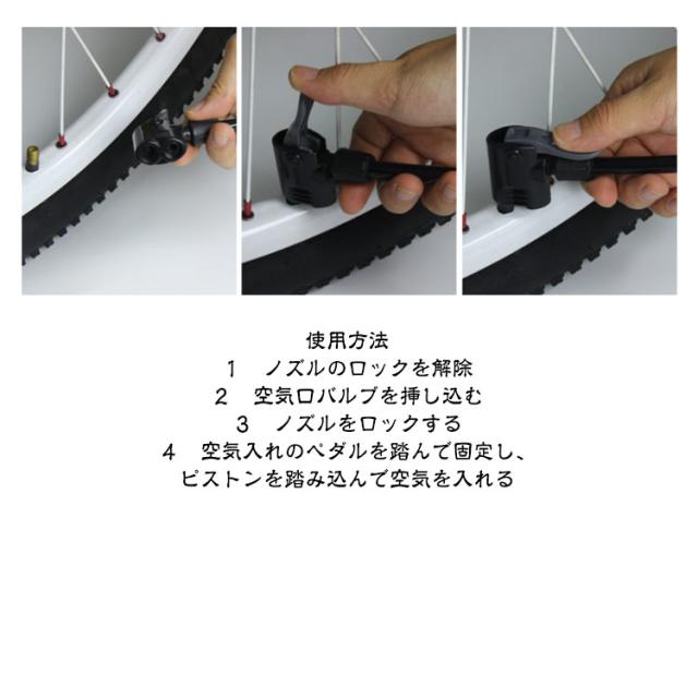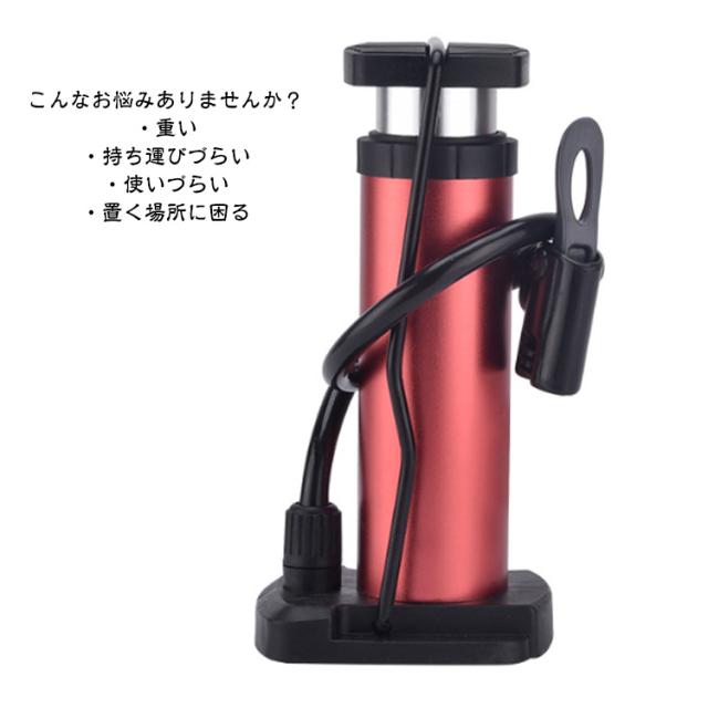 | 小さいは正義!! 手のひらサイズの空気入れ【2個セット】 ?超軽量の約300g ?便利な足踏みタイプ ?英・仏・米式に対応 こんなお悩みありませんか? ・重い ・持ち運びづらい ・使いづらい ・置く場所に困る お任せください! 当店の空気入れで全て解決できます! とにかくコンパクト! 収納時はわずか約17cmとiPhoneとほぼ同じ大きさまでコンパクト化を実現! 超コンパクトなので置ける場所の範囲を広げてくれます! 収納例)下駄箱、玄関の隙間、工具箱、バイクのメットイン、自転車、自動車のグローブボックス、トランクの隙間、ビーチバッグ、自転車のカゴ わずか300g! 重さは約300gを実現。2本指でも余裕で持てるほど軽くなりました! 簡単&疲れない! 片足で簡単に空気を入れられるので、余計な力は不要です!お子様でも問題なくご使用いただけます。 ※何かにつかまってペダルを踏むとバランス取れてより一層簡単に空気を入れることができます。 ほぼ全ての自転車で利用できます! 英・仏・米式のバルブにアダプタ不要で対応できます!付属のアダプタ使用で浮き輪やボールのポンプとしてご使用も可能です。 使用方法 1 ノズルのロックを解除 2 空気口バルブを挿し込む 3 ノズルをロックする 4 空気入れのペダルを踏んで固定し、ピストンを踏み込んで空気を入れる ※仏式の場合 小ネジを緩め少し空気を抜きます(空気注入後は締めます) ※英式の場合 ナットが緩んでいたら締めます 2種類のバルブアダプタ付き 風船や浮き輪等の専用アダプタと、ボールの空気入れ専用のアダプタが付属しています。 本体サイズ 横9×高さ17cm ペダル部分サイズ 5cm 本体裏面に浮き輪・ボール用アダプタが収納 | |