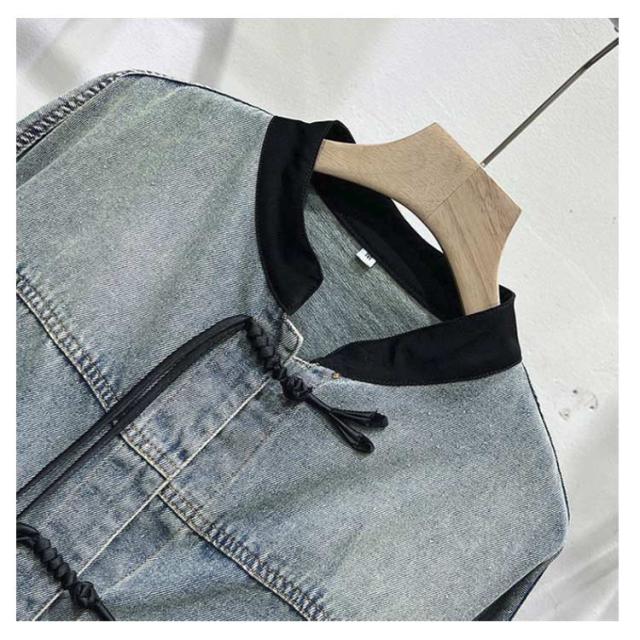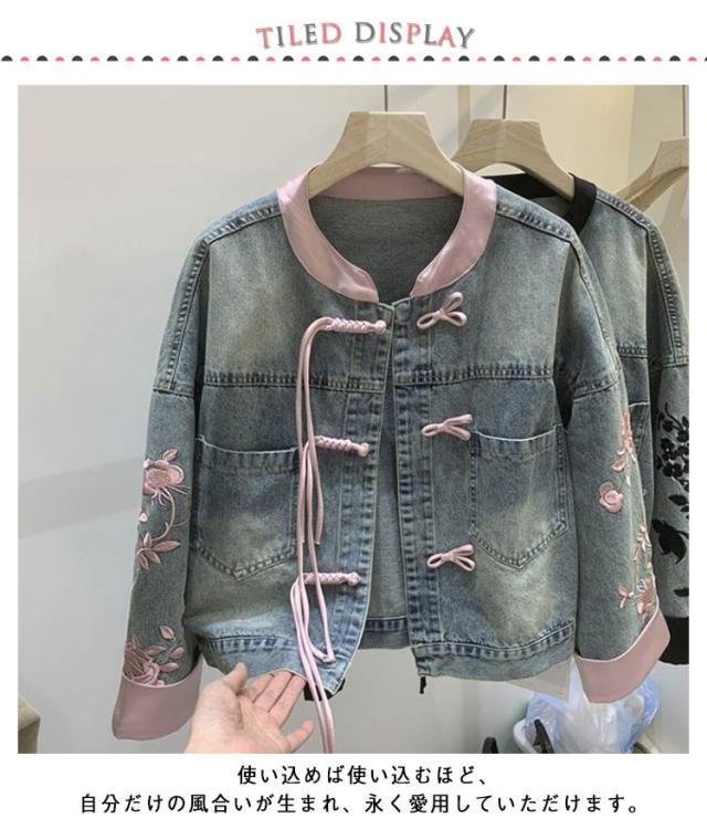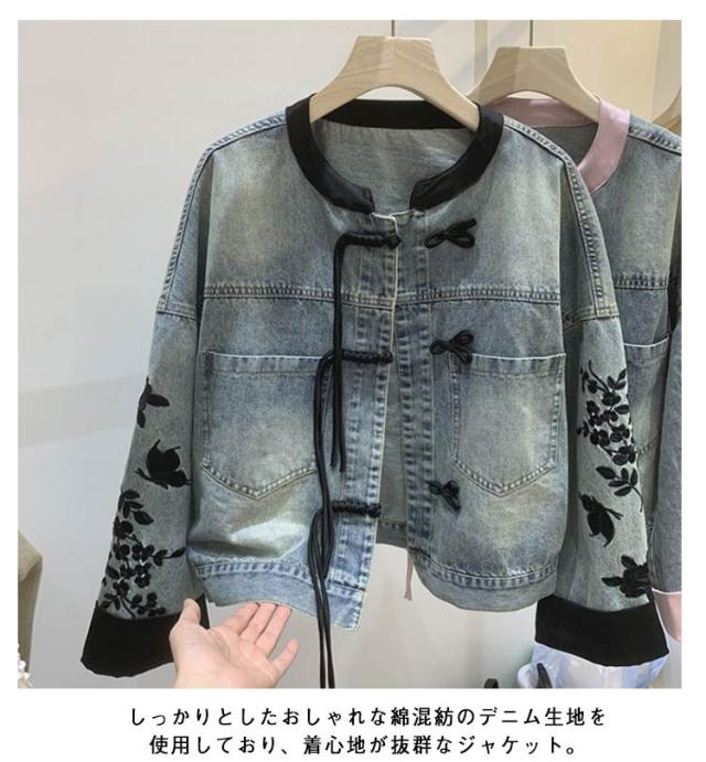チャイナボタン コート アウター ノーカラー ショート丈 レディース チャイナ風 デニムジャケット 羽織り チャイナ風 ジージャン 長袖 カジュアル おしゃれ 春 秋 S M L XL 2XL