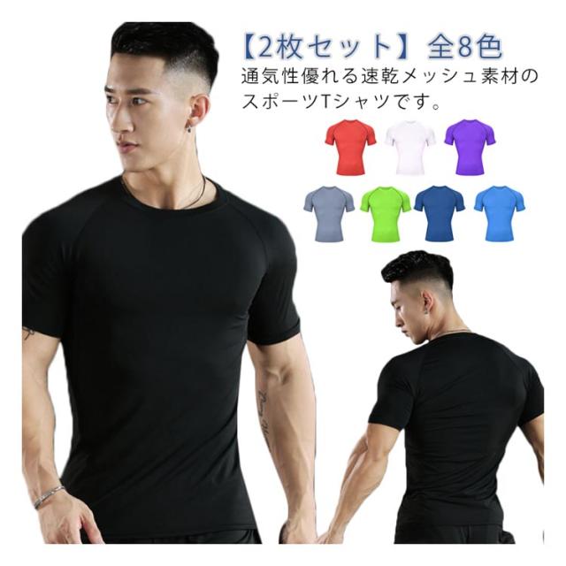 速乾 ドライTシャツ インナー Tシャツ 2点セット トップス アンダーウェア 吸汗速乾 サッカー 筋トレ ジムウェア 速乾 スポーツシャツ メンズ トレーニングウェア ランニング ダンス ジョギング ゴルフ Tシャツ S M L XL 2XL 3XL