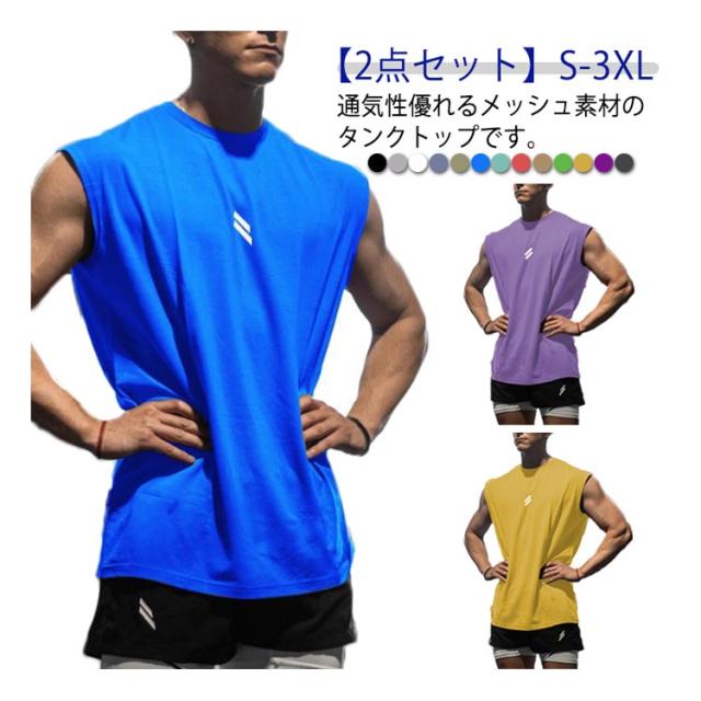 タンクトップ ウェア 【2点セット】ジム トレーニングウェア インナー ジム おしゃれ 【2点セット】ジム M 筋トレ メンズ 部屋着 スポーツ かっこいい 速乾 スポーツウェア バスケットボール サッカー S ジムウェア L XL 2XL 3XL