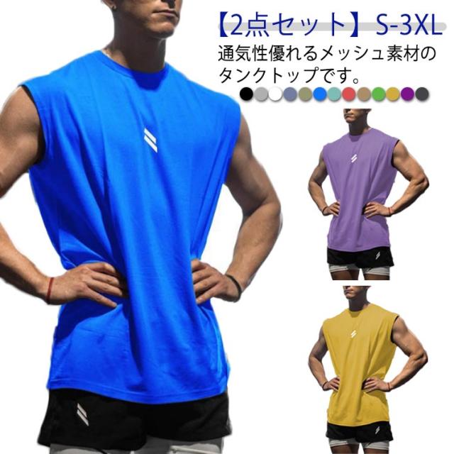 サッカー ノースリーブ トレーニングウェア メンズ ジム スポーツウェア タンクトップ 【2点セット】ジム 筋トレ 【2点セット】ジム ジムウェア 部屋着 スポーツ かっこいい インナー おしゃれ 速乾 バスケットボール S M L XL 2XL 3XL