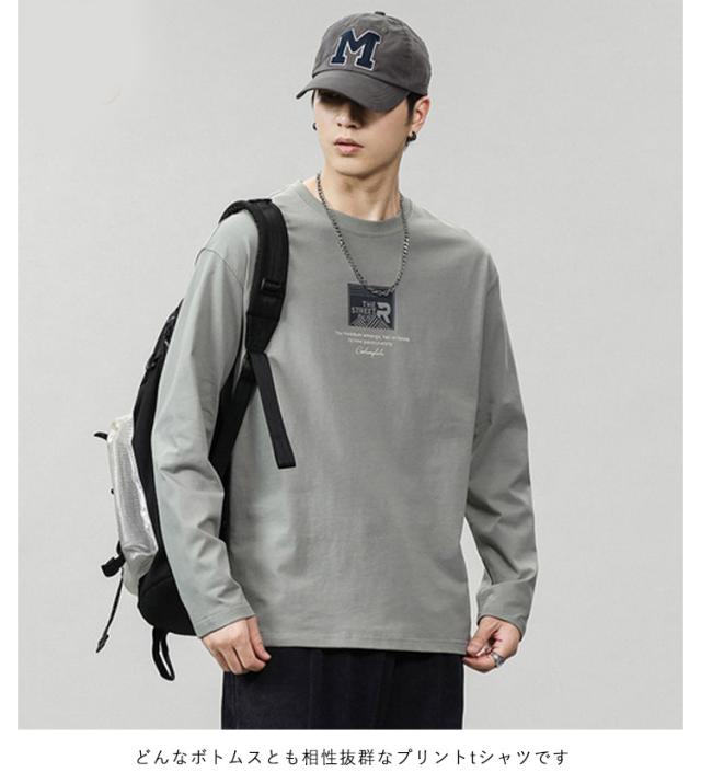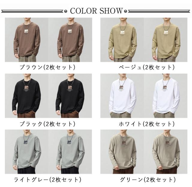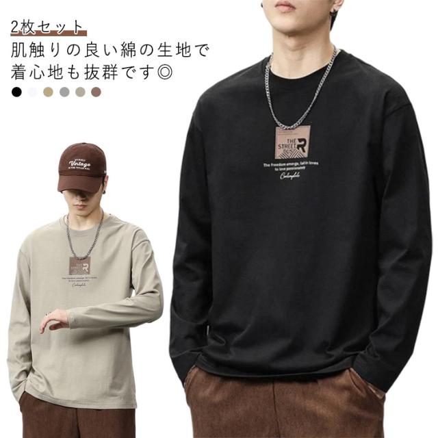 Tシャツ ゆったり メンズ 2枚セット 春 ロンT トップス ロングtシャツ カットソー ロゴtシャツ 長袖tシャツ メンズ 薄手 インナー 長袖 シンプル 重ね着 おしゃれ 大きいサイズ 秋物