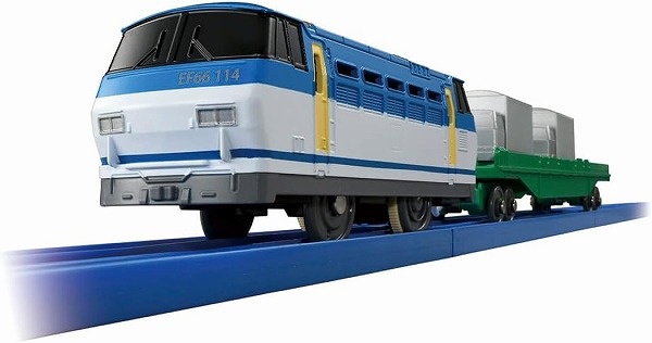 付属のピギーバックトラックは貨車に載せて遊ぶことができ、別売のトミカ(ミニカー)を載せて遊ぶこともできます。
