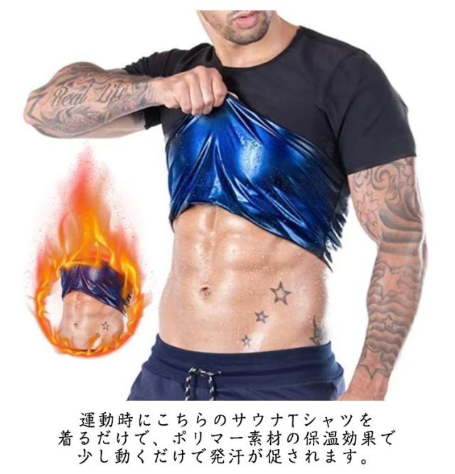 | 運動時にこちらのサウナTシャツを着るだけで、ポリマー素材の保温効果で少し動くだけで発汗が促されます。 軽い運動でも、サウナ効果で滝汗を実現。 見た目は普通のTシャツですので、周りの目が気になりません。 また、コンプレッションタイプなので、アウターに響かないので、気になるようでしたら、インナーとしても活用することができます。 インナーとして使えば、普段と同じことをしているだけで、発汗が期待できます。 | |