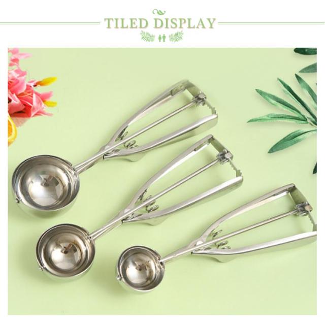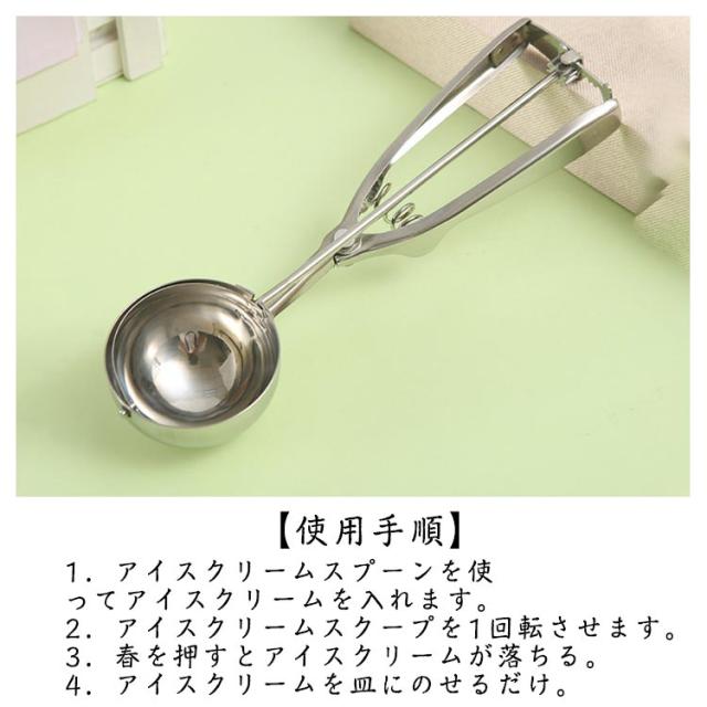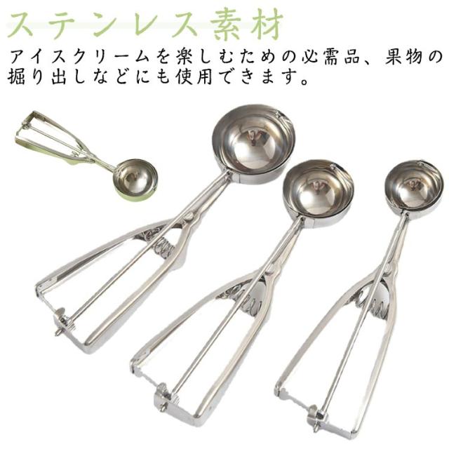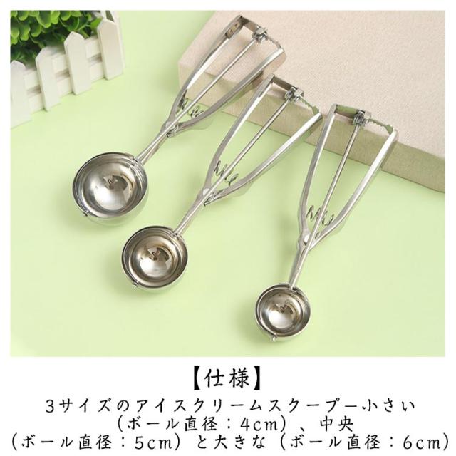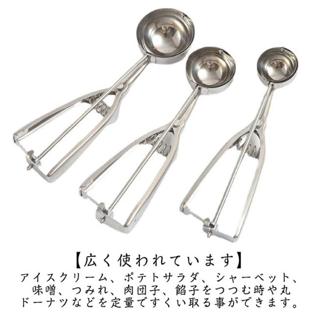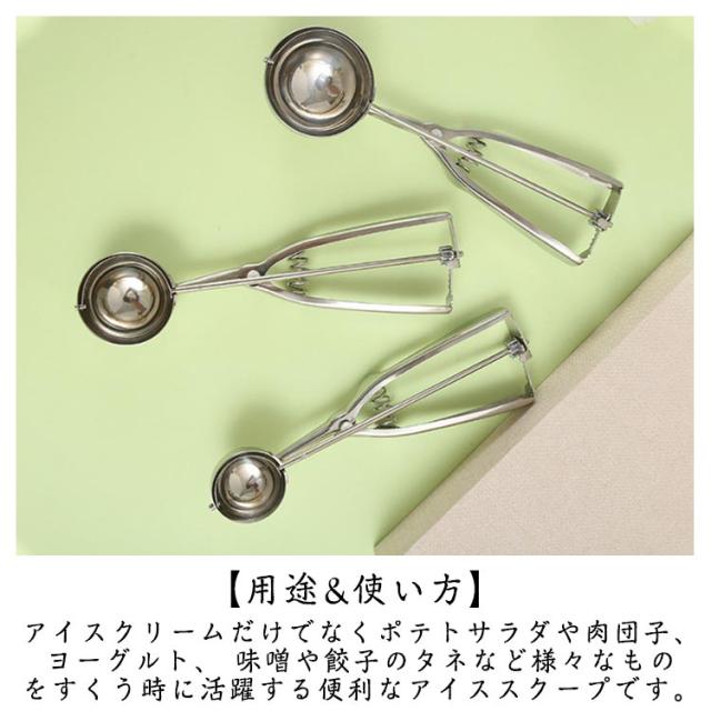 | 【ステンレス素材】高級ステンレス鋼製、磨き、スプリングデザイン、耐久性、厚みのある滑り止めハンドル、手触りの良さ、アイスクリームを楽しむための必需品、果物の掘り出しなどにも使用できます。 【仕様】3サイズのアイスクリームスクープ−小さい(ボール直径:4cm)、中央(ボール直径:5cm)と大きな(ボール直径:6cm) 【用途&使い方】アイスクリームだけでなくポテトサラダや肉団子、ヨーグルト、 味噌や餃子のタネなど様々なものをすくう時に活躍する便利なアイススクープです。 すくった後にハンドルを握ると、金属ワイヤーがアイスと半球の間をツルンっと通り抜け、アイスを落としてくれます。 【広く使われています】アイスクリーム、ポテトサラダ、シャーベット、味噌、つみれ、肉団子、餡子をつつむ時や丸ドーナツなどを定量ですくい取る事ができます。お茶、コーヒー、デザート、スイカに使えて、キッチンやレストランでは欠かせないユーティリティです。 【使用手順】1.アイスクリームスプーンを使ってアイスクリームを入れます。 2.アイスクリームスクープを1回転させます。 3.春を押すとアイスクリームが落ちる。 4.アイスクリームを皿にのせるだけ。 | |