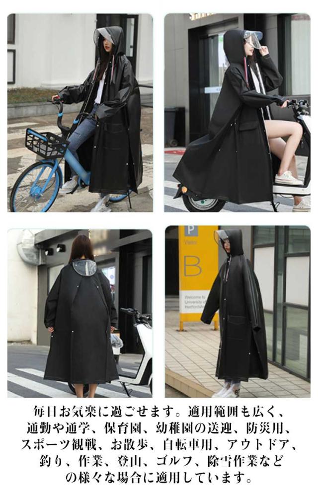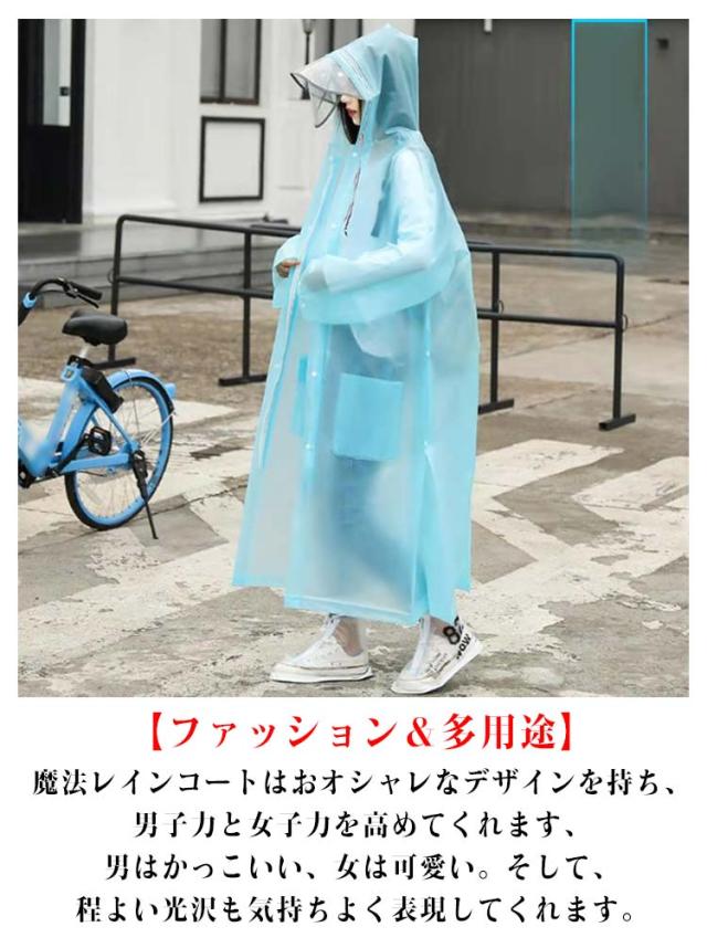 | 【高質EVA素材&性能高い】環境と耐久性に優れたエコ素材のEVAを採用し、手触りはすべすべで触り心地がよく、丈夫で防水力も高いです。 また、通気性は抜群で、蒸し暑くないです。3重撥水加工も施されたことがあり、しっかり雨を弾けます。 【ファッション&多用途】魔法レインコートはおオシャレなデザインを持ち、男子力と女子力を高めてくれます、男はかっこいい、女は可愛い。そして、程よい光沢も気持ちよく表現してくれます。 毎日お気楽に過ごせます。適用範囲も広く、通勤や通学、保育園、幼稚園の送迎、防災用、スポーツ観戦、お散歩、自転車用、アウトドア、釣り、作業、登山、ゴルフ、除雪作業などの様々な場合に適用しています。 春夏秋冬、一年間にご使用いただける重宝です。 男女を問わず、どんな方にもご利用いただけるレインコートです。 | |