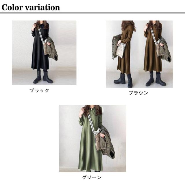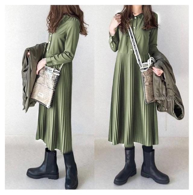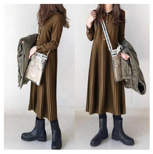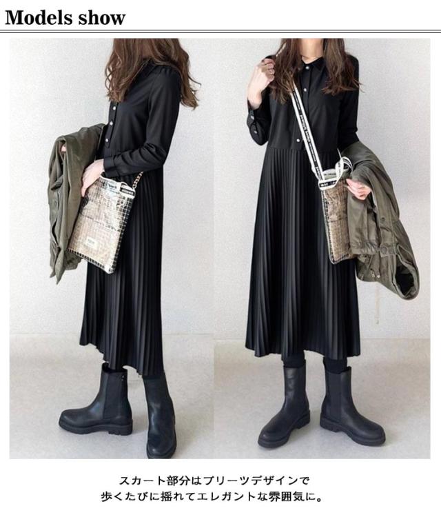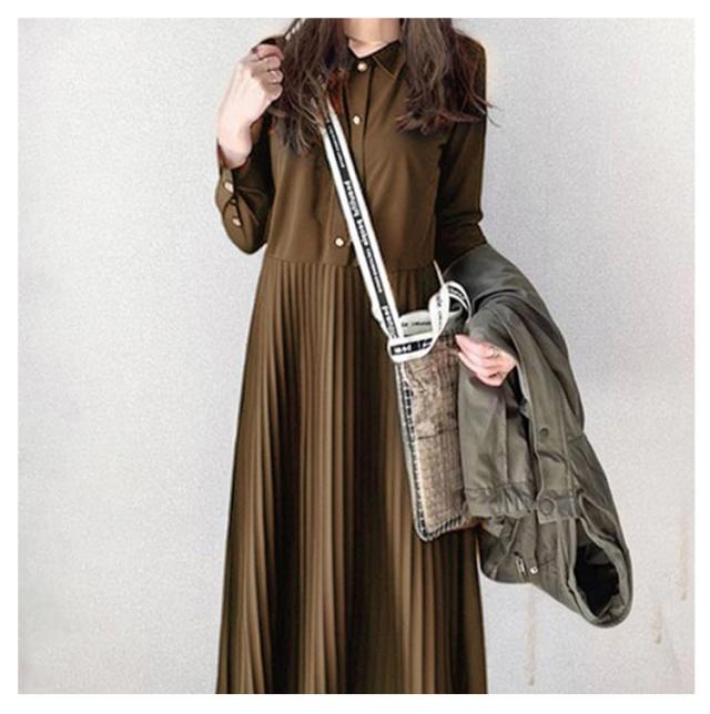 | 大人気のプリーツシャツワンピース! スカート部分はプリーツデザインで歩くたびに揺れてエレガントな雰囲気に。 ウエスト位置を高めに設定しているので、脚長効果も◎ おでかけ着や通勤着としても着回しできます。 ブーツでモードに、パンプスを合わせれてきれいめに。 | |