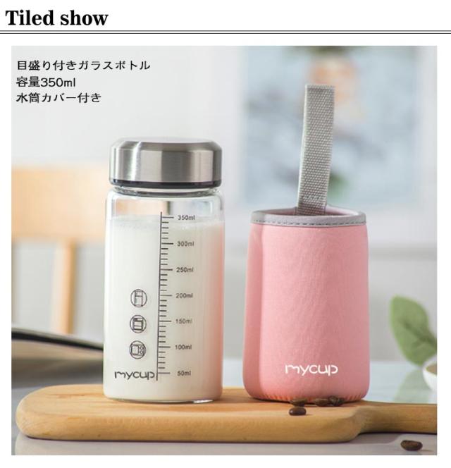 350ml ガラスボトル 目盛り付き 透明 会社 水筒 耐熱ガラス ウォーターボトル ガラス水筒 直飲み 男女兼用 携帯便利 水筒カバー付き 漏れ防止 超軽量 スポーツボトル マグボトル 水筒 学校 アウトドア 旅行 ジム スポーツ 電子レンジ対応 自宅