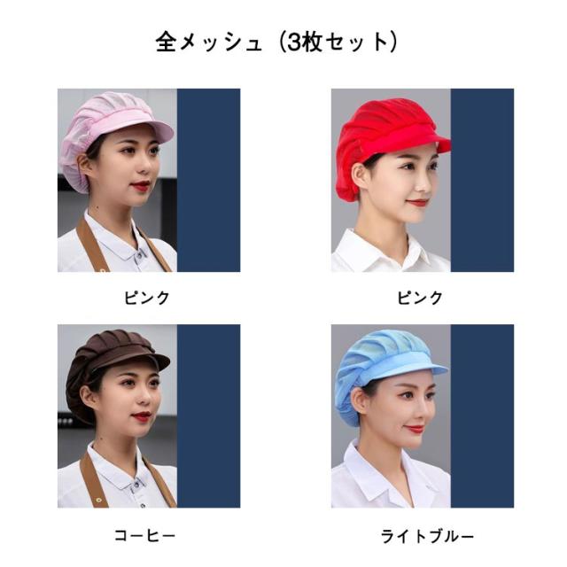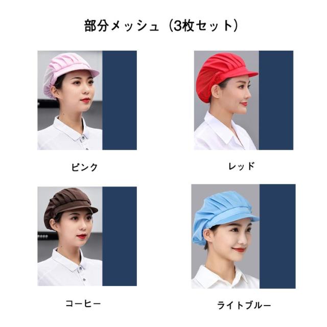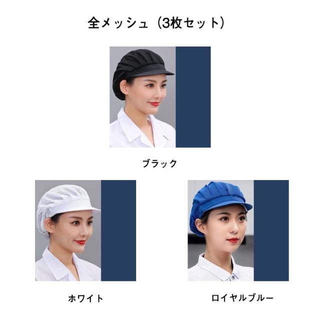 衛生キャップ レストラン 給食 カフェ 飲食店 厨房 作業用 髪落下防止 男女兼用 工場 衛生キャップ 帽子 厨房 カフェキャップ 調理師 衛生帽 備品 通気性 メッシュ 3枚セット 給食帽子 衛生キャップ レストランキャップ レディース