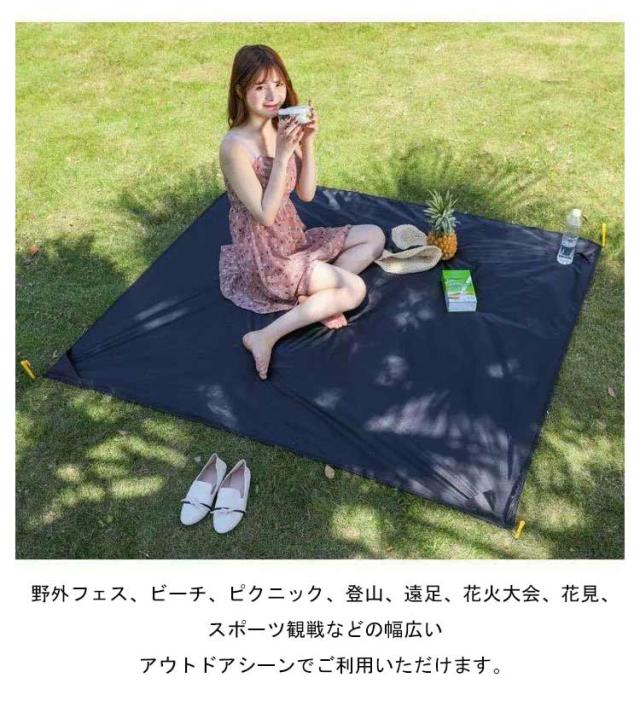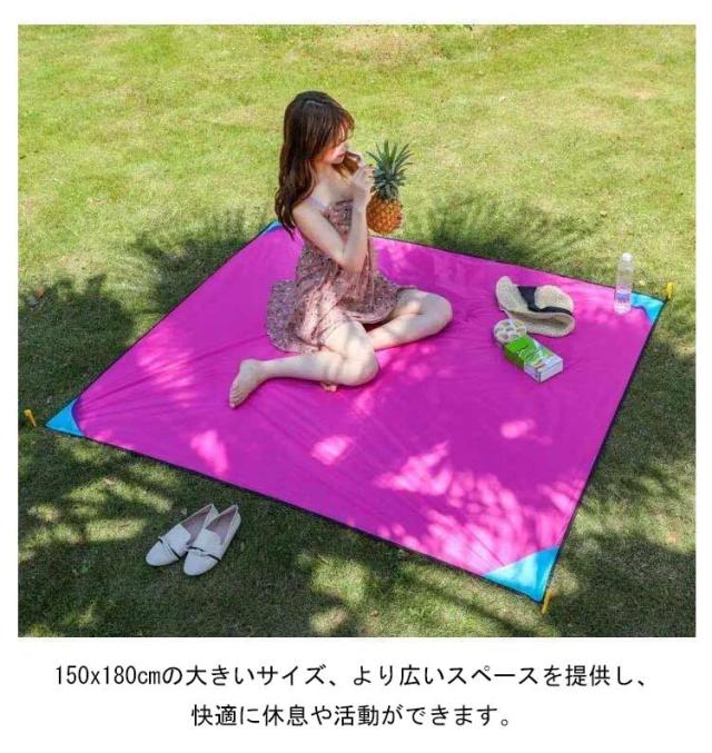| 雨、海や川遊びで濡れていても取り扱いしやすいレジャーシートです。 ペグで固定できるから風が強い日でも安心です。 防水性があるので、汚れても水で簡単に洗い流すことができます。 150x180cmの大きいサイズ、より広いスペースを提供し、快適に休息や活動ができます。 小さく折りたたんで軽量&コンパクト♪携帯に便利な収納袋付き! 野外フェス、ビーチ、ピクニック、登山、遠足、花火大会、花見、スポーツ観戦などの幅広いアウトドアシーンでご利用いただけます。 アウトドアだけではなく、室内や施設内の敷物としても使用できます。 | |