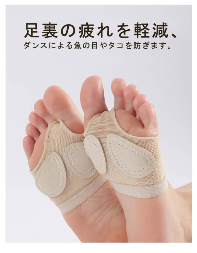 | コンテンポラリー、モダン、ジャズ、ヨガ、ピラティスなどで素足で踊る際に使うフットシューズです。 メッシュ素材でムレにくく快適。伸縮性が良くフィット感のある履き心地。 足裏の疲れを軽減、ダンスによる魚の目やタコを防ぎます。 靴の中の滑り止めや外反母趾を予防、ハイヒールの靴ずれ防止にも効果大! 色も素肌に近い肌色なので、舞台でも素足のように綺麗に見えます! | |
