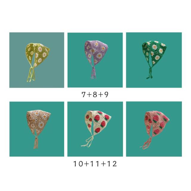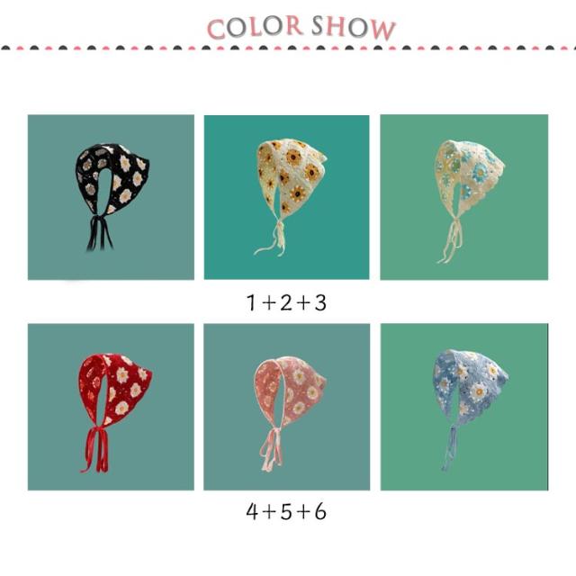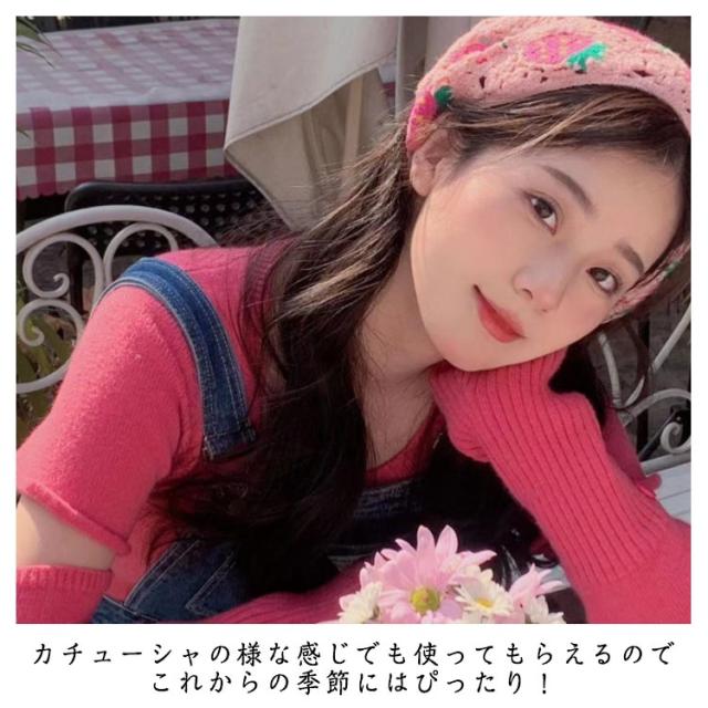 | 3枚セット さっとかぶれて簡単楽々三角巾タイプのバンダナ。 透かし編みにしたデザインがとても繊細でお洒落です。 カチューシャの様な感じでも使ってもらえるのでこれからの季節にはぴったり! フランスのレトロな美しさを醸し出し、夏の服装に優雅さを加えるのに最適です。 | |