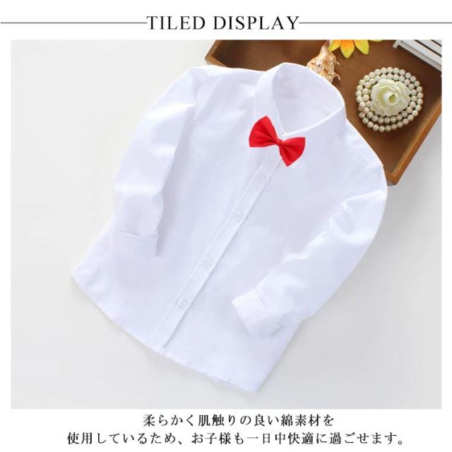 | 蝶ネクタイ/ネクタイ付きのキッズ用のボタンシャツ♪ 柔らかく肌触りの良い綿素材を使用しているため、お子様も一日中快適に過ごせます。 長袖デザインは、季節の変わり目や冷房の効いた室内でも体温調節に役立ちます。 無地のシンプルなデザインは、どんなボトムスとも相性抜群。 入学式や卒業式、発表会などのフォーマルな場面でも、お子様の清潔感を演出します。 | |