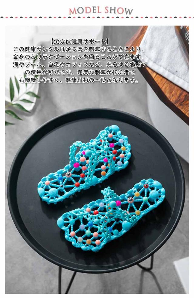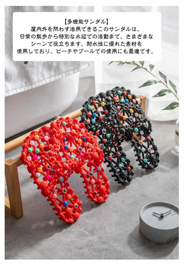 | 【全方位健康サポート】 この健康サンダルは足つぼを刺激することにより、全身のとリラクゼーションを図ることができます。海やプール、自宅やオフィスなど、あらゆる場所での使用が可能です。適度な刺激が初心者でも継続しやすく、健康維持の一助となります。 【快適性と機能性を両立】 耐水性と速乾性を備えた素材を使用しているため、水辺のアクティビティに最適です。脱いだ後の不快なニオイを残さず、丸洗い可能でいつでも清潔に保てます。また、ムレにくい設計は蒸し暑い夏場にもぴったりです。 【安全で快適な履き心地】 滑り止め加工が施されたこのサンダルは、滑りやすい場所でも安心して使用できます。柔らかいPVC素材が足を優しく包み込み、長時間履いても疲れにくい構造です。 【多機能サンダル】 屋内外を問わず活用できるこのサンダルは、日常の散歩から特別な水辺での活動まで、さまざまなシーンで役立ちます。耐水性に優れた素材を使用しており、ビーチやプールでの使用にも最適です。 | |