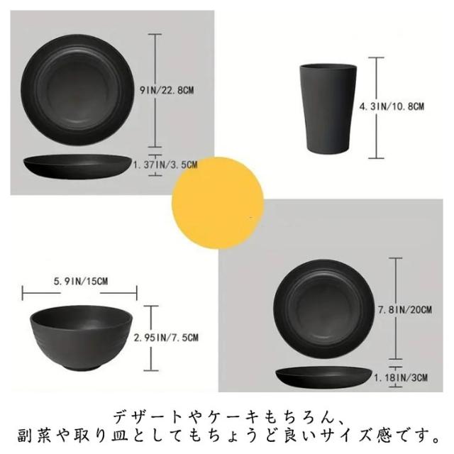 | サイズについての説明 | 【サイズ】16点セット 【ボウル×4個】口径約15cm 高さ7.5cm 【デザート皿×4個】直径約20cm 高さ3cm 【ディナー皿×4個】直径約22.8cm 高さ約3.5cm 【カップ×4個】容量約13.5oz 高さ約10.8cm ※上記サイズは平置き実寸になります。 サイズ表の実寸法は商品によって1-3cm程度の誤差がある場合がございます。 |
