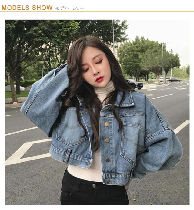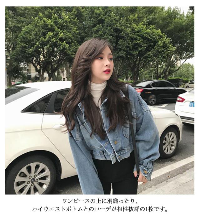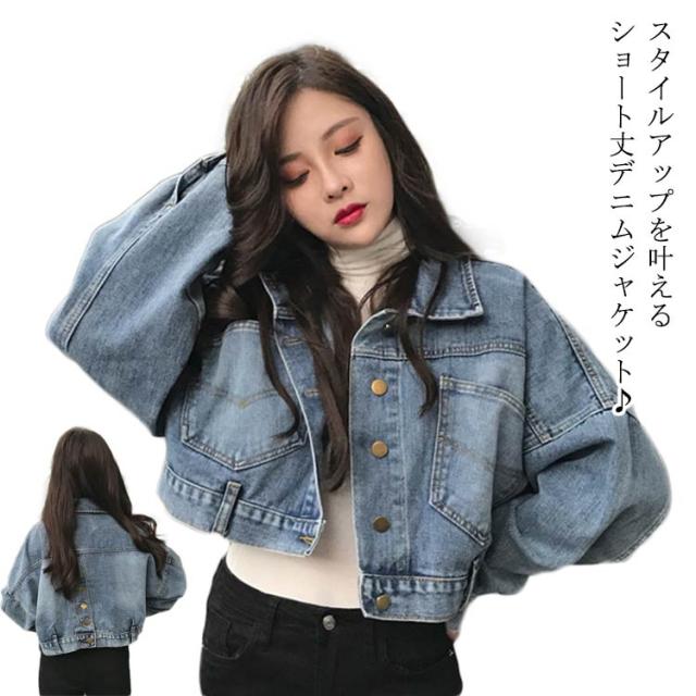 原宿系 デニム ショート丈 羽織り Gジャン 韓国 デニムジャケット ジージャン デニムジャケット ドルマン デニム ジャケット バックスリット 春アウター クロップド丈デニム デニムブルゾン ジャンパー 上着