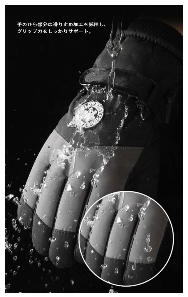 | 手の動き・構造・フィット感を計算し設計したグローブ。 表地には、撥水加工が施されており、雪や雨にも安心。 手のひら部分は滑り止め加工を採用し、グリップ力をしっかりサポート。 裏側は羽のように軽く、高い保温性と柔軟性を持つ超微細ポリエステル繊維素材。 | |