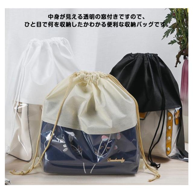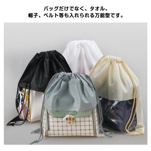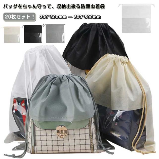 ホコリ防止 整理 バッグ 見やすい バッグ 巾着タイプ 保管 収納 バッグ保護 防カビ 収納バッグ バッグ収納 クリア 防塵カバー 袋 巾着袋 折りたたみ ホコリよけ 20枚セット 防湿 ポーチ お片づけ 不織布 巾着 汚れ防止 鞄保管用 無地 シンプル