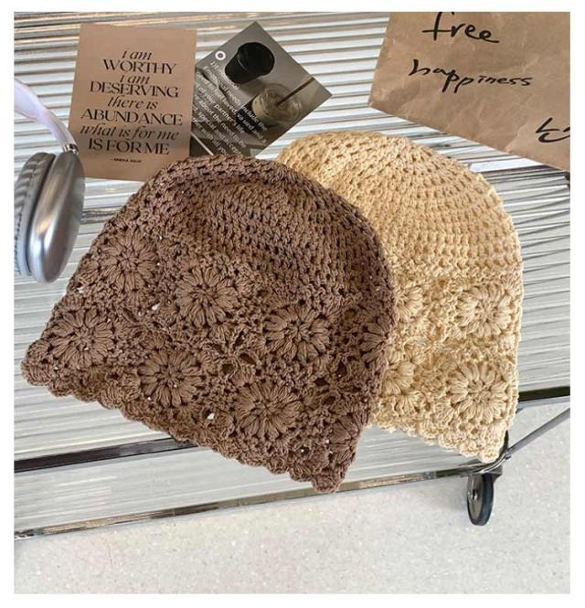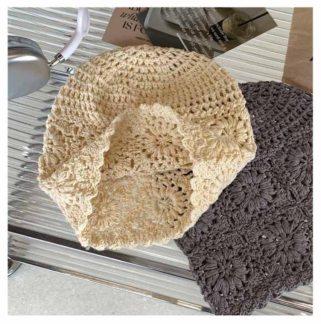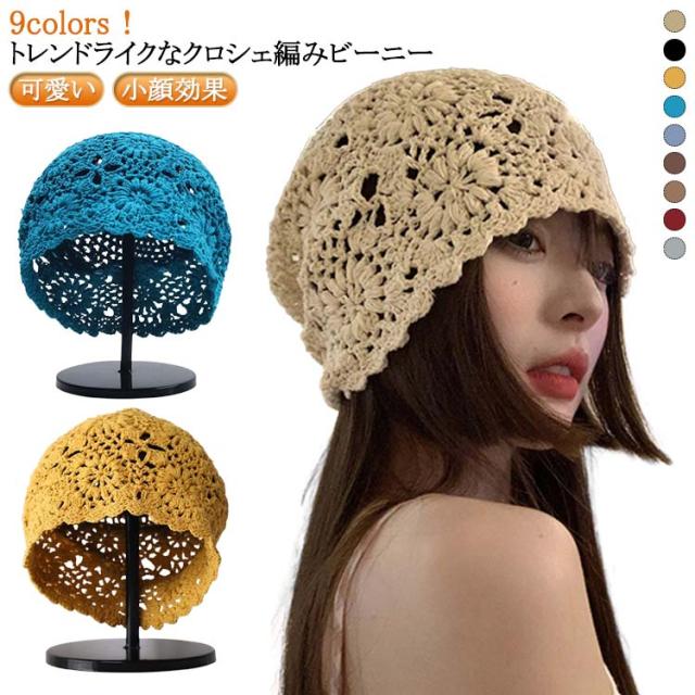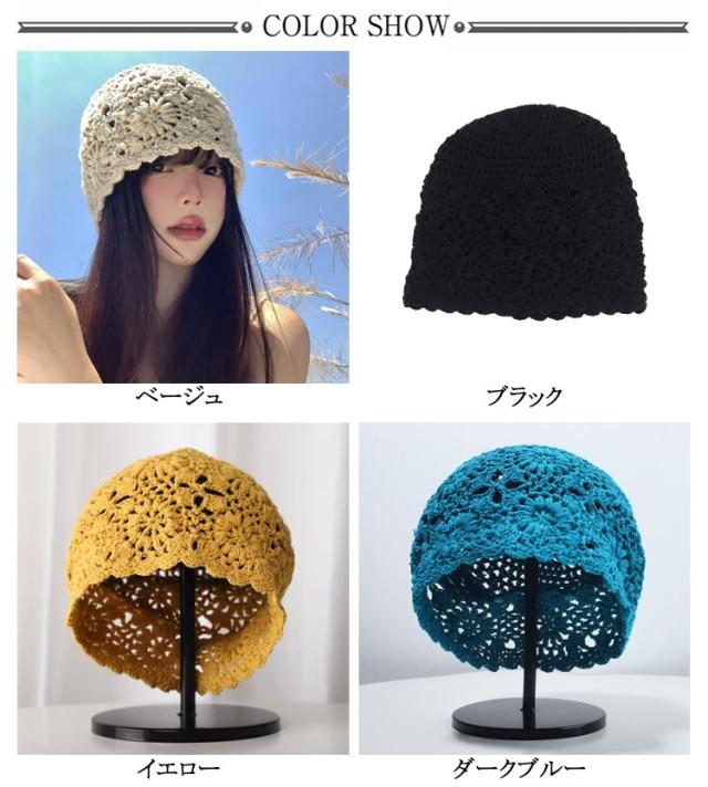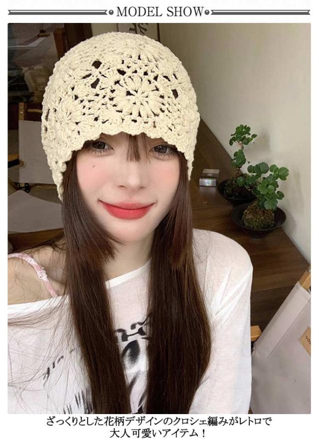 | 9colors! トレンドライクなクロシェ編みビーニー ざっくりとした花柄デザインのクロシェ編みがレトロで大人可愛いアイテム! オールシーズン使える程よい厚みのニット素材を使用 | |