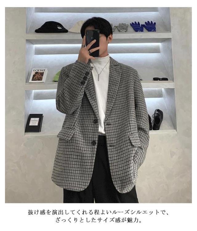 テーラードジャケット 秋 テーラードジャケット ツイードジャケット テーラード スーツジャケット 春 2つボタン メンズ 裏地付き 2B チェック柄 ジャケット 羽織り ゆったり オーバーサイズ カジュアルスーツ 大きいサイズ カジュアル