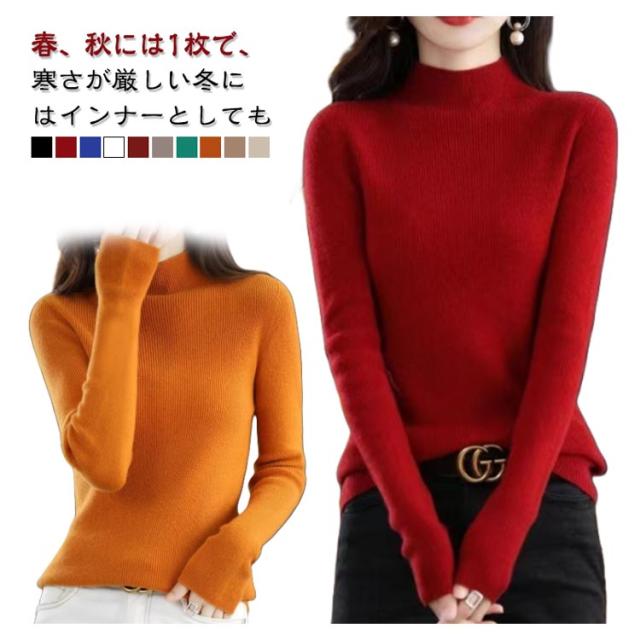 秋冬 ニットソー 高伸縮 無地 着痩せ セーター レディース 着回しやすい 秋冬 ニット 小顔 カシミヤタッチ ハイネック カットソー 長袖 インナー 重ねる着便利 カジュアル 秋 冬 オフィス ビジネス 通勤