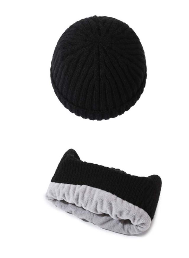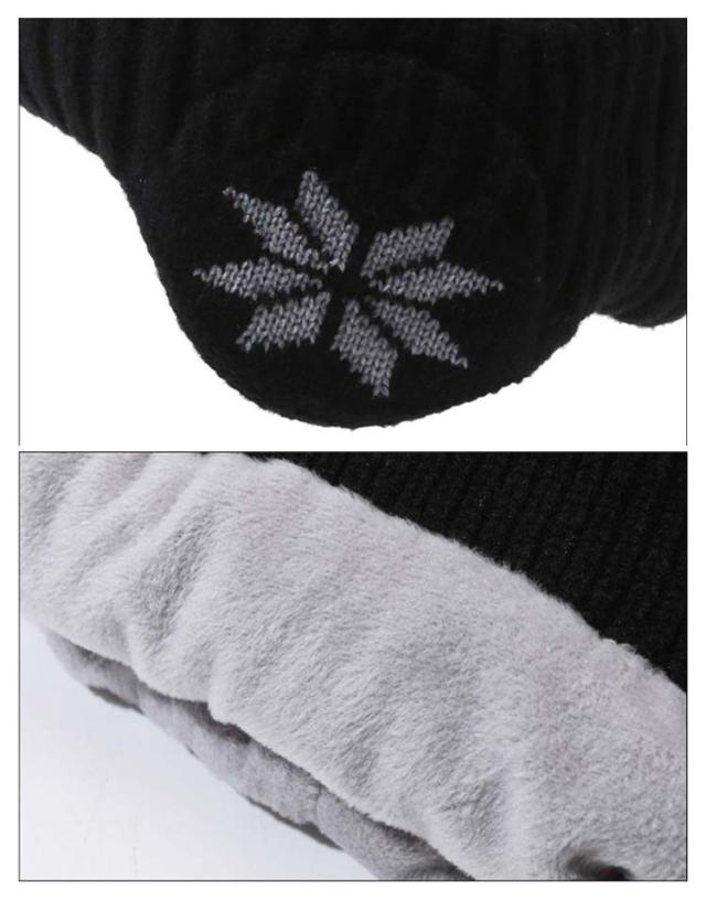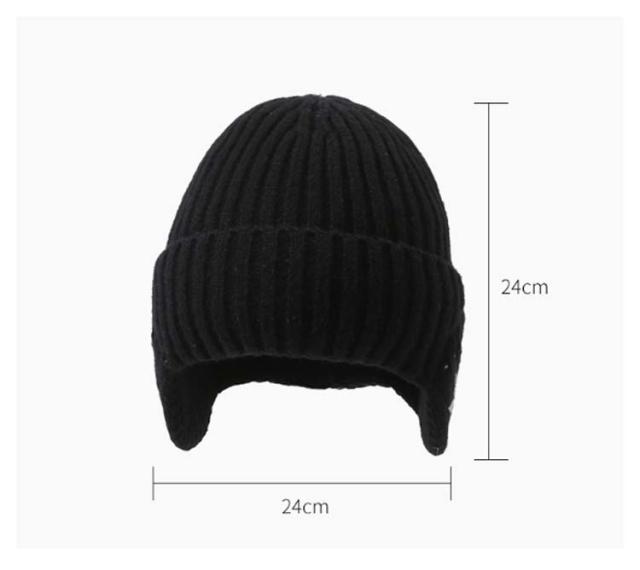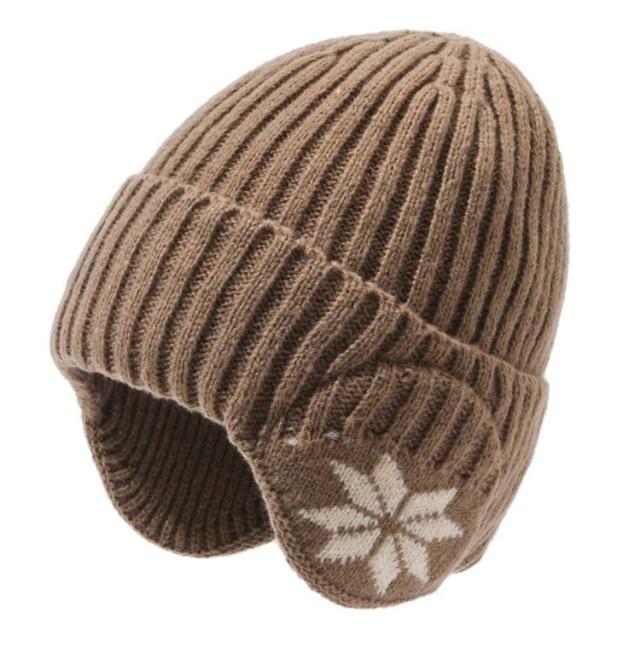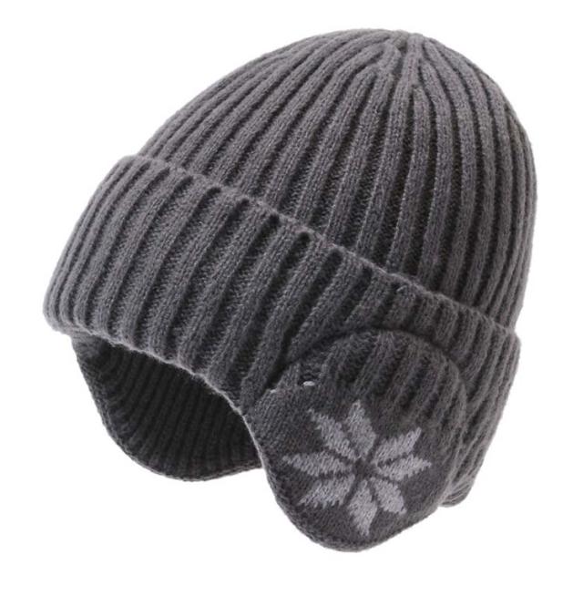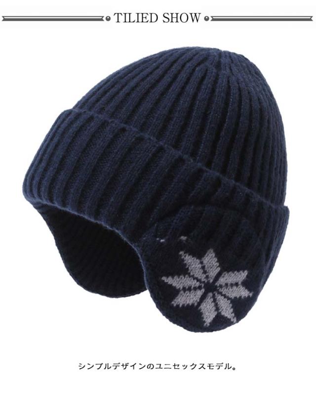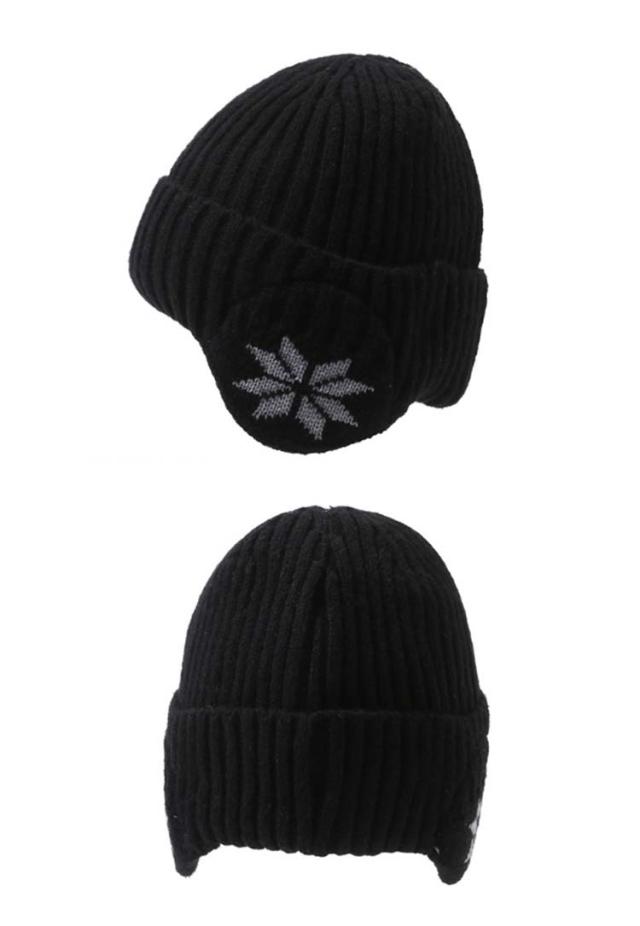 | 耳まで暖かい、耳あて付きのニット帽子。 シンプルデザインのユニセックスモデル。 | |
