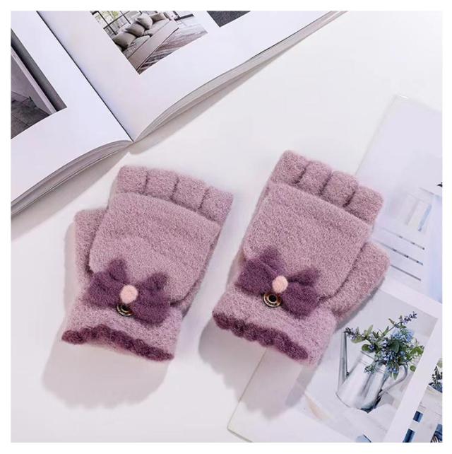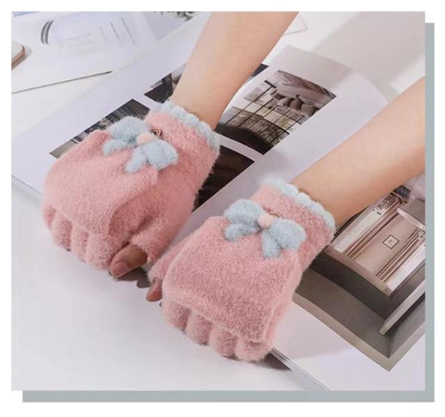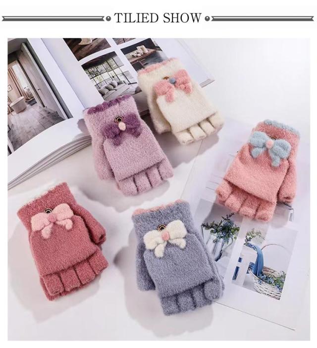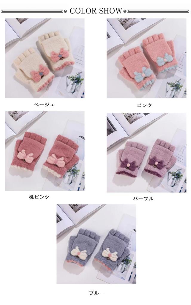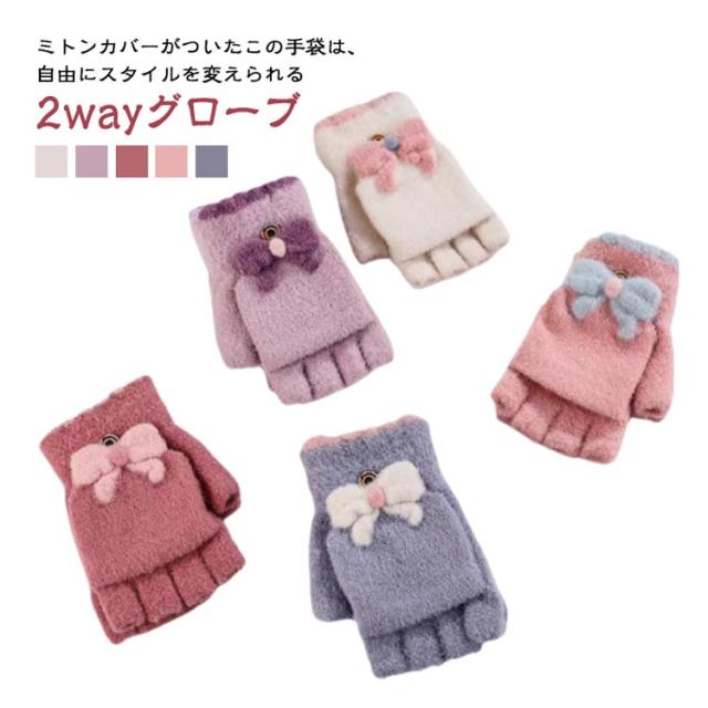 レディース 2way 指なし キッズ 手袋 裏起毛 学生 秋冬 スマホ対応 リボン 2way ふんわり ふわふわ 2way ジュニア かわいい おしゃれ 起毛 パステルカラー あったか 暖かい フィンガーレス 女子 防寒 通学 子ども用 グローブ