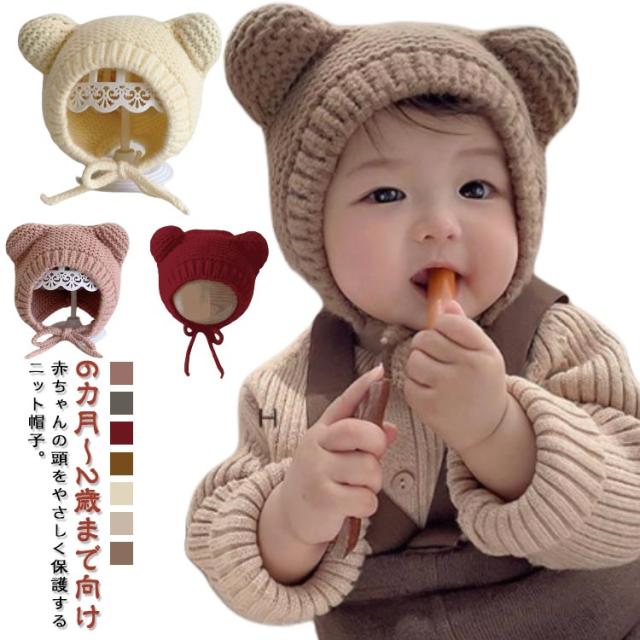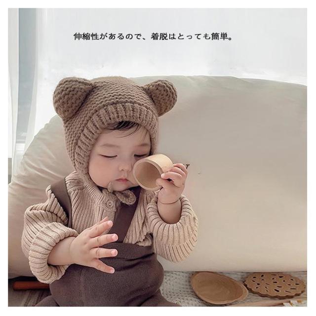 くま くま 保温 耳付き 子ども帽子 ニット帽 ニット 帽子 キッズ あったか ニットキャップ 赤ちゃん ベビー帽子 ニット帽 紐付き 耳当て 耳保護 くま耳 あごひも 伸縮性高く 頭優しい ベビー 防寒 寒さ対策 通園