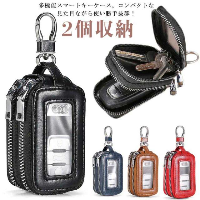 メンズ 革 車 キーケース スマートキーケース キーケース キーホルダー 2個収納 コンパクト キーケース クリア窓 財布 スマートキーカバー 軽量 複数入る ケース 家の鍵 レディース 多機能 便利 紛失防止 大人 盗難防止 父の日 母の日 ギフト プレゼント