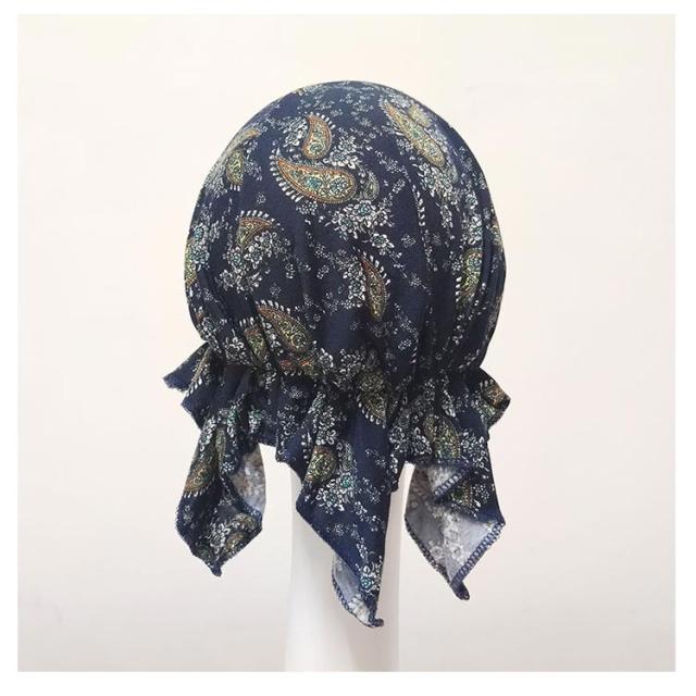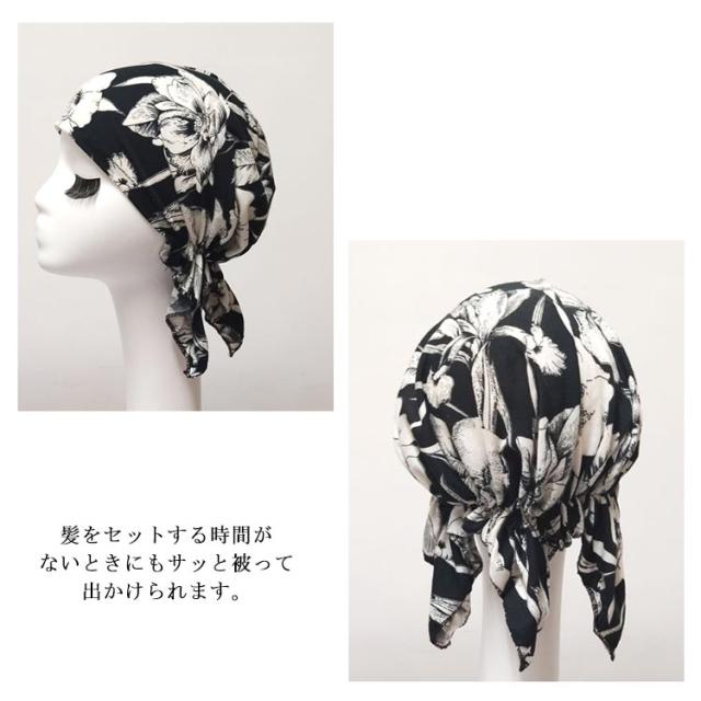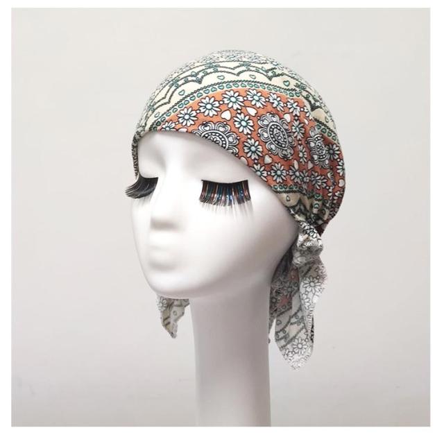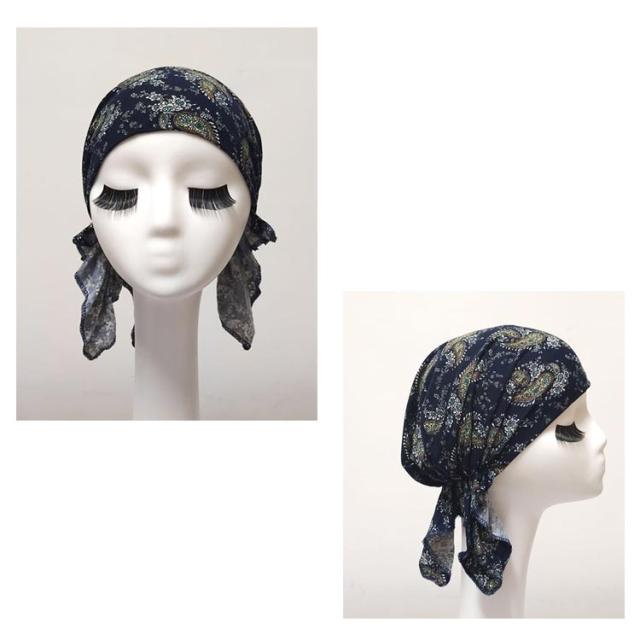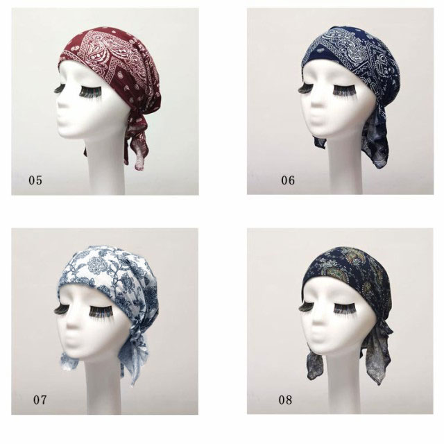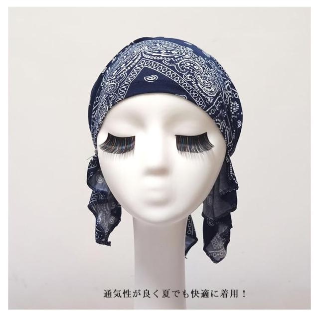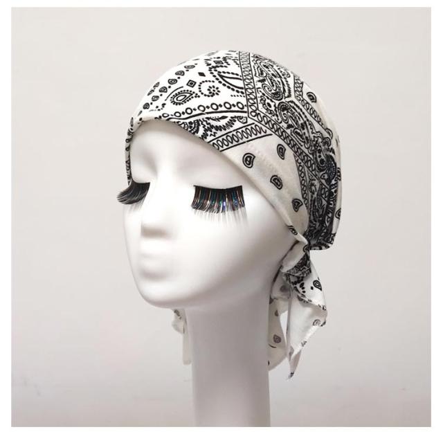 | バンダナキャップ 後頭部はゴム入り、装着が簡単で締めつけ感もなく手で巻いたようなスタイルが完成! 髪をセットする時間がないときにもサッと被って出かけられます。 通気性が良く夏でも快適に着用! 医療用帽子としてや、飲食店でのお仕事用としても好評です! | |
