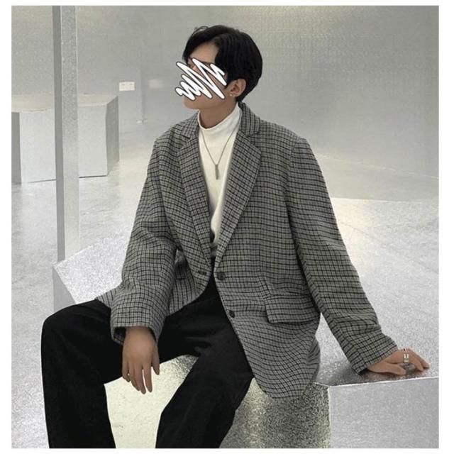 テーラード 春 裏地付き ツイードジャケット テーラードジャケット アウター メンズ 秋 チェック柄 ゆったり テーラードジャケット 2つボタン ジャケット 羽織り 2B オーバーサイズ カジュアルスーツ 大きいサイズ カジュアル