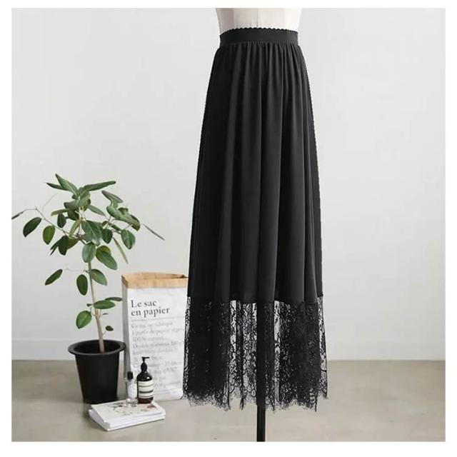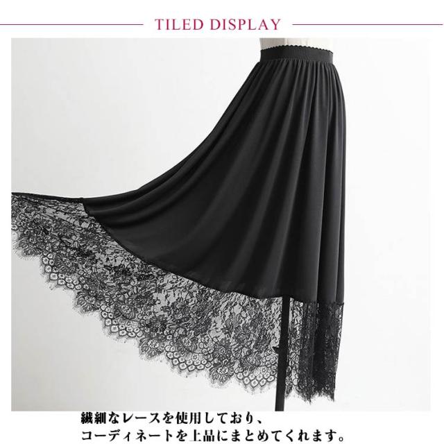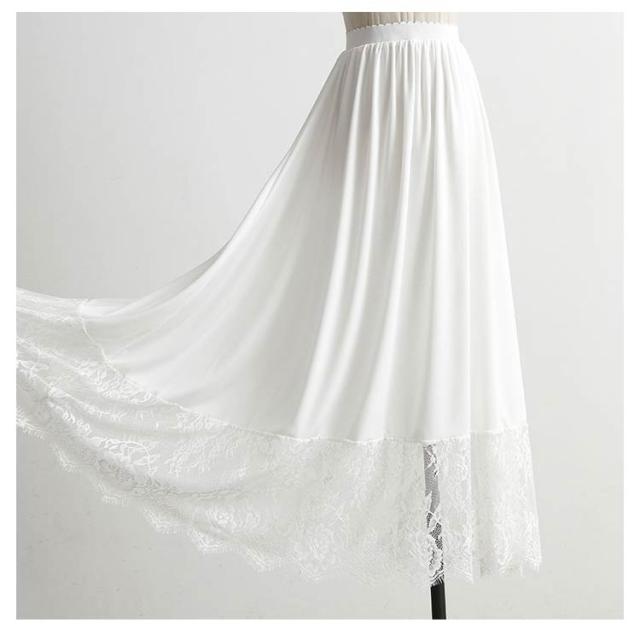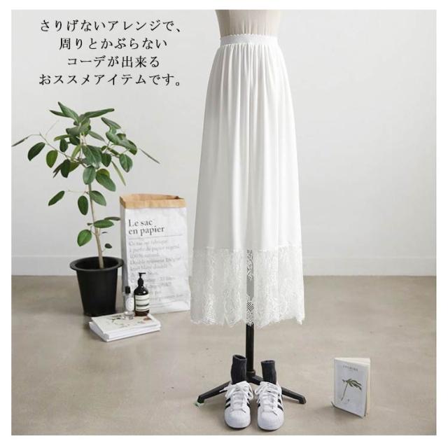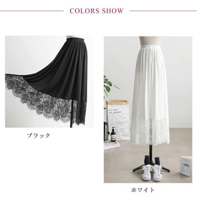 スカート ガールズ マキシ丈 重ね着 レース インナー ナチュラル 見せ インナー ペチコート ペチスカート 白 ホワイト 裾 ブラック 体型カバー ゆったり 大人 フリーサイズ ペチコート おしゃれ レディース 裾レース付き ペチスカート 20代 30代 40代 50代 春夏