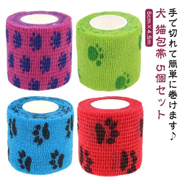 猫用 ペット 犬 5個セット けが 怪我 猫 犬用 犬用包帯 ヘルスサポート 体温 風邪 バンテージ リストバンド 自己粘着性 老犬 熱 ペットフレックス 包帯 犬 介護 保護 床ずれ 怪我なめ防止 汚れ防止 ガーゼテープ 伸縮包帯 通気性 粘着包帯