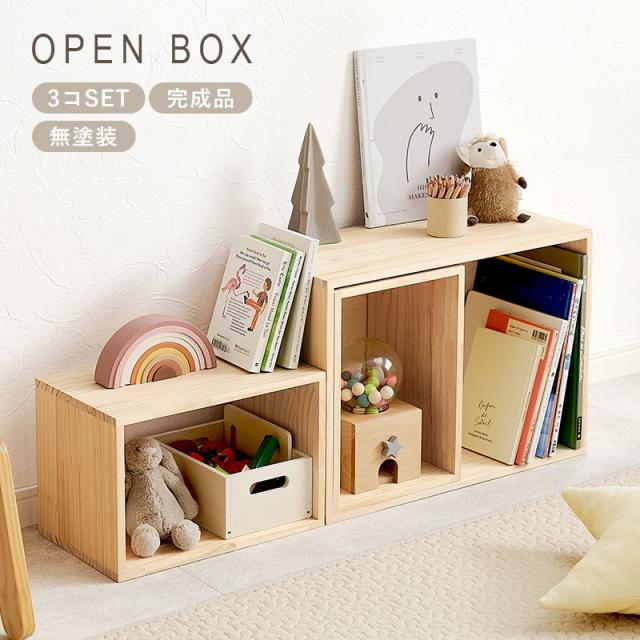 収納ボックス 3点セット 幅50cm 木製 天然木 パイン材 無塗装 DIYアレンジ 組立不要 本棚 サイドテーブル レイアウト自在