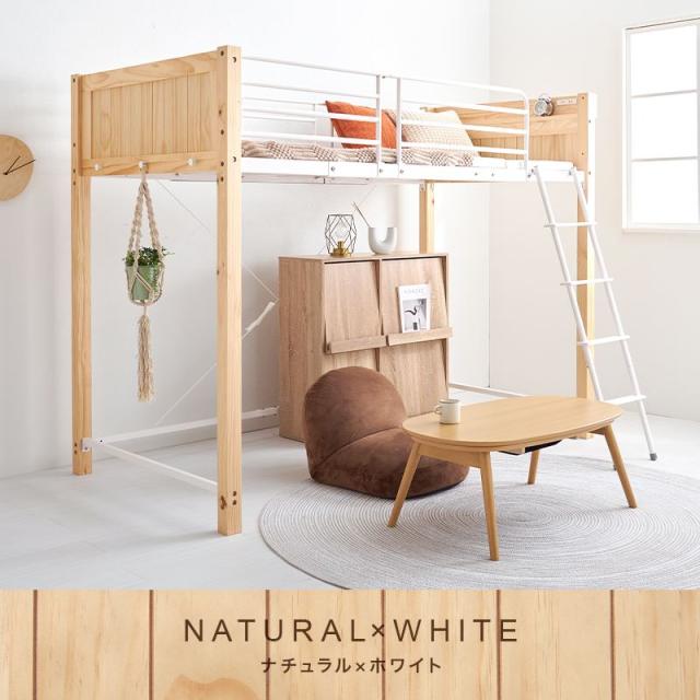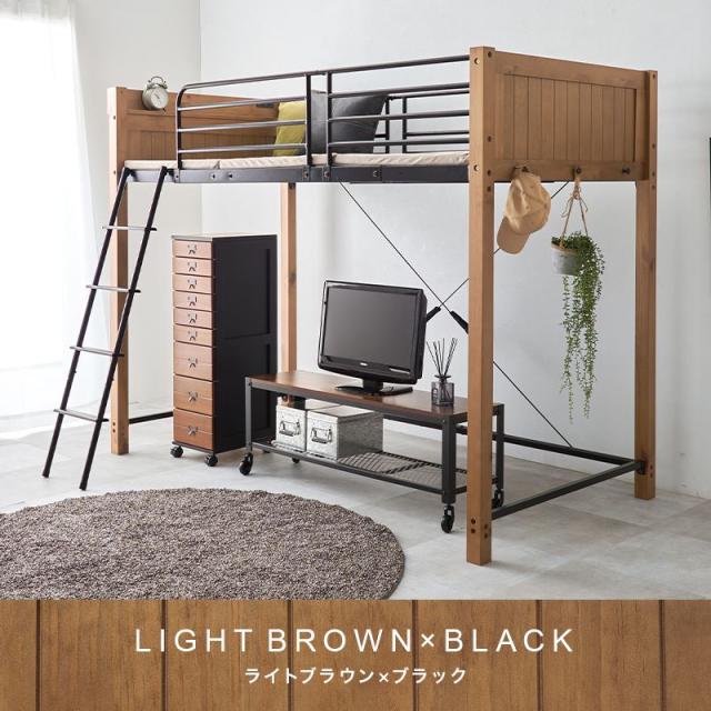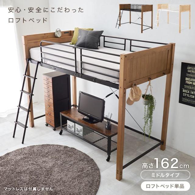 ロフトベッド ミドルタイプ 高さ162cm スチール/木製 ハイタイプ サイドガード付き 頑丈 耐荷重100kg