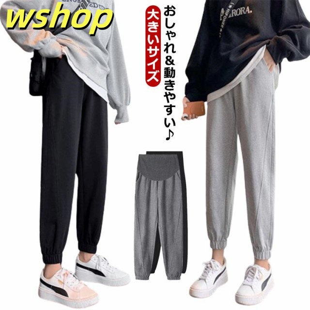 春秋 ジャージ ポケット付き 調節 下 マタニティジャージ かわいい 【送料無料】マタニティ 下 ズボン レギンス スウェット 春服 【送料無料】マタニティ ジョガーパンツ 秋服 アジャスター おしゃれ 黒 ブラック