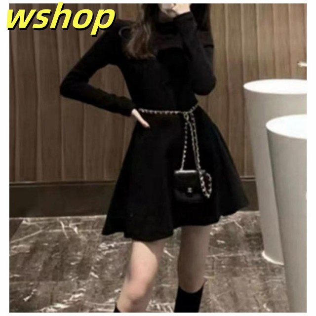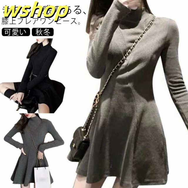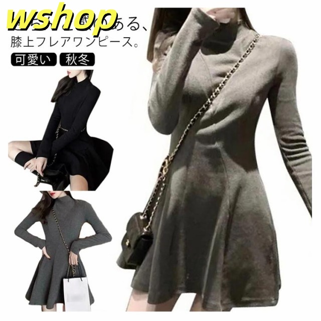 売れ筋アイテム 多機能デザイン 二の腕カバー シンプル 今だけ 】膝上ワンピ フレア ミニ丈 スリム 【wshop ワンピース インナーワンピース 長袖 レディース ハーフネック 春 即納OK 膝上 秋冬 ミニ SNS話題 可愛い フレアワンピース プリーツ 送料無料実施中